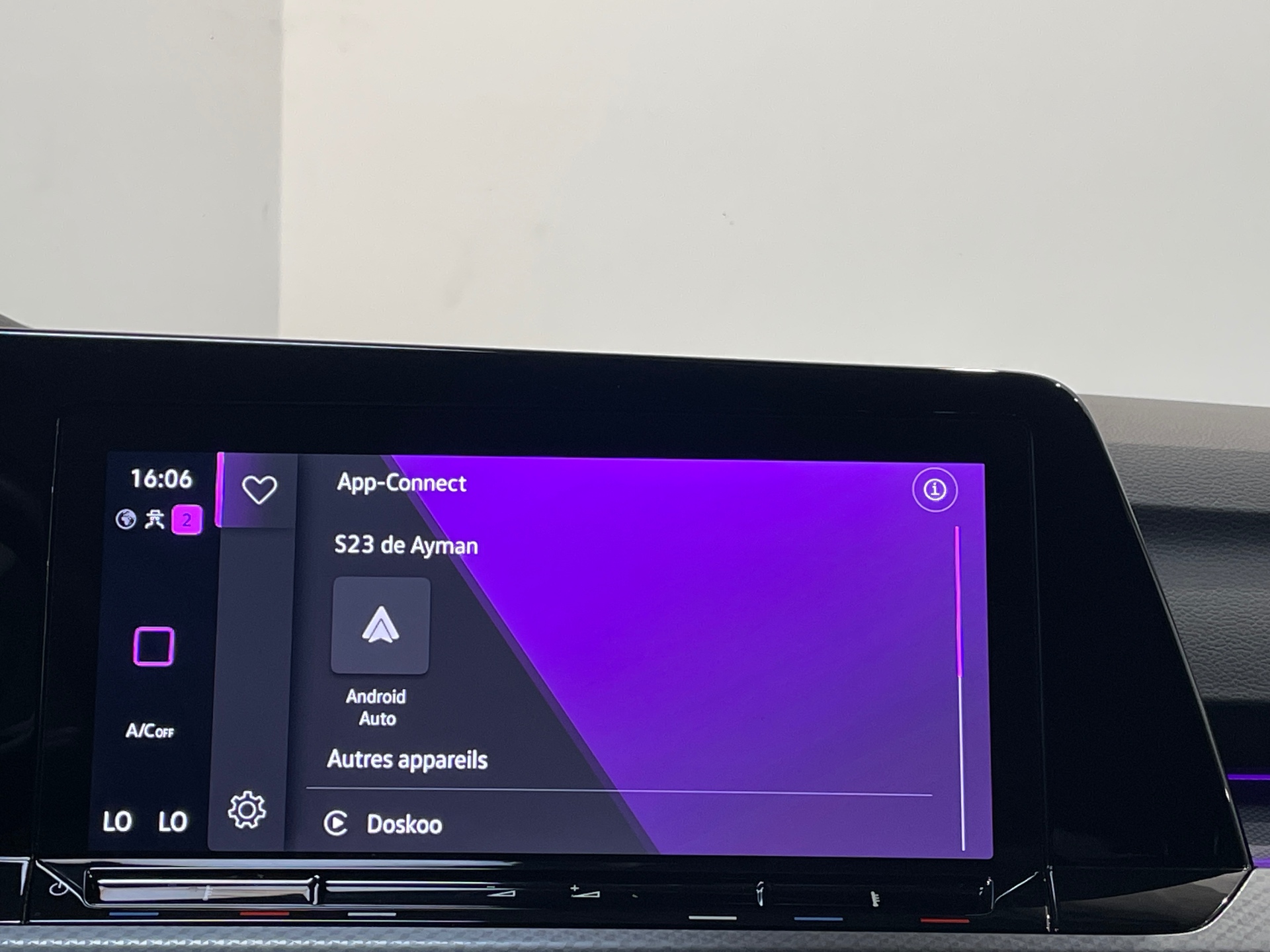 affichage et controle via l'ecran tactile de la voiture du contenu