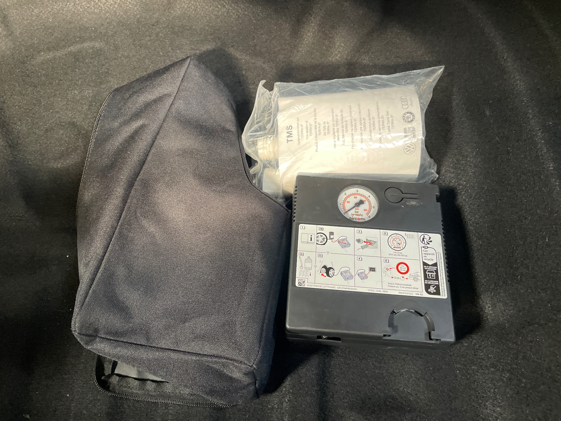 Kit de depannage : compresseur 12 V et produit d'etancheite de pneu
