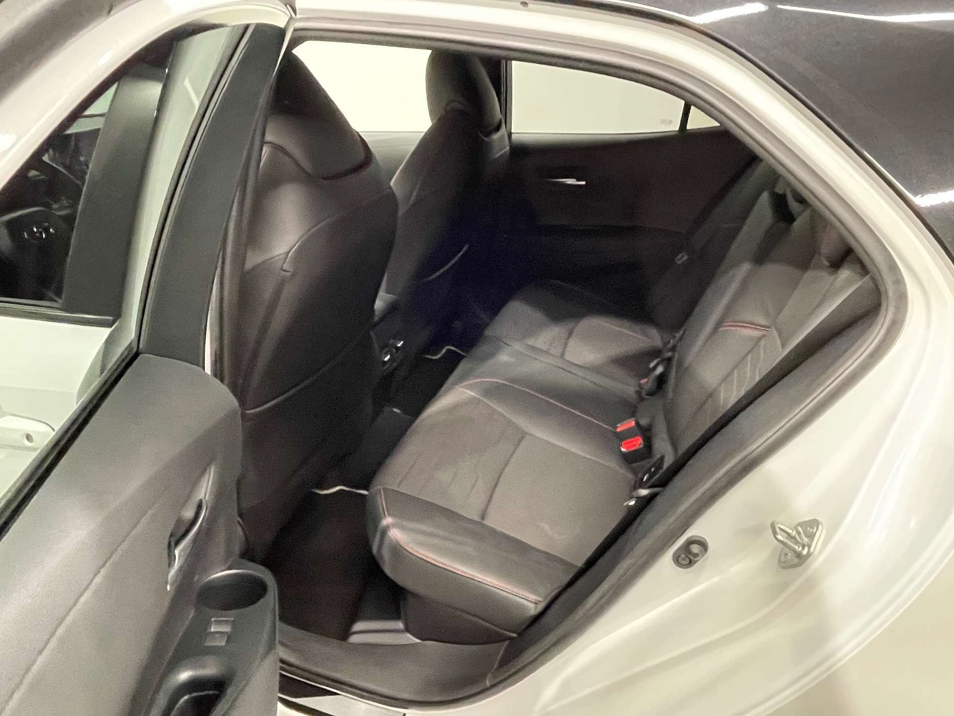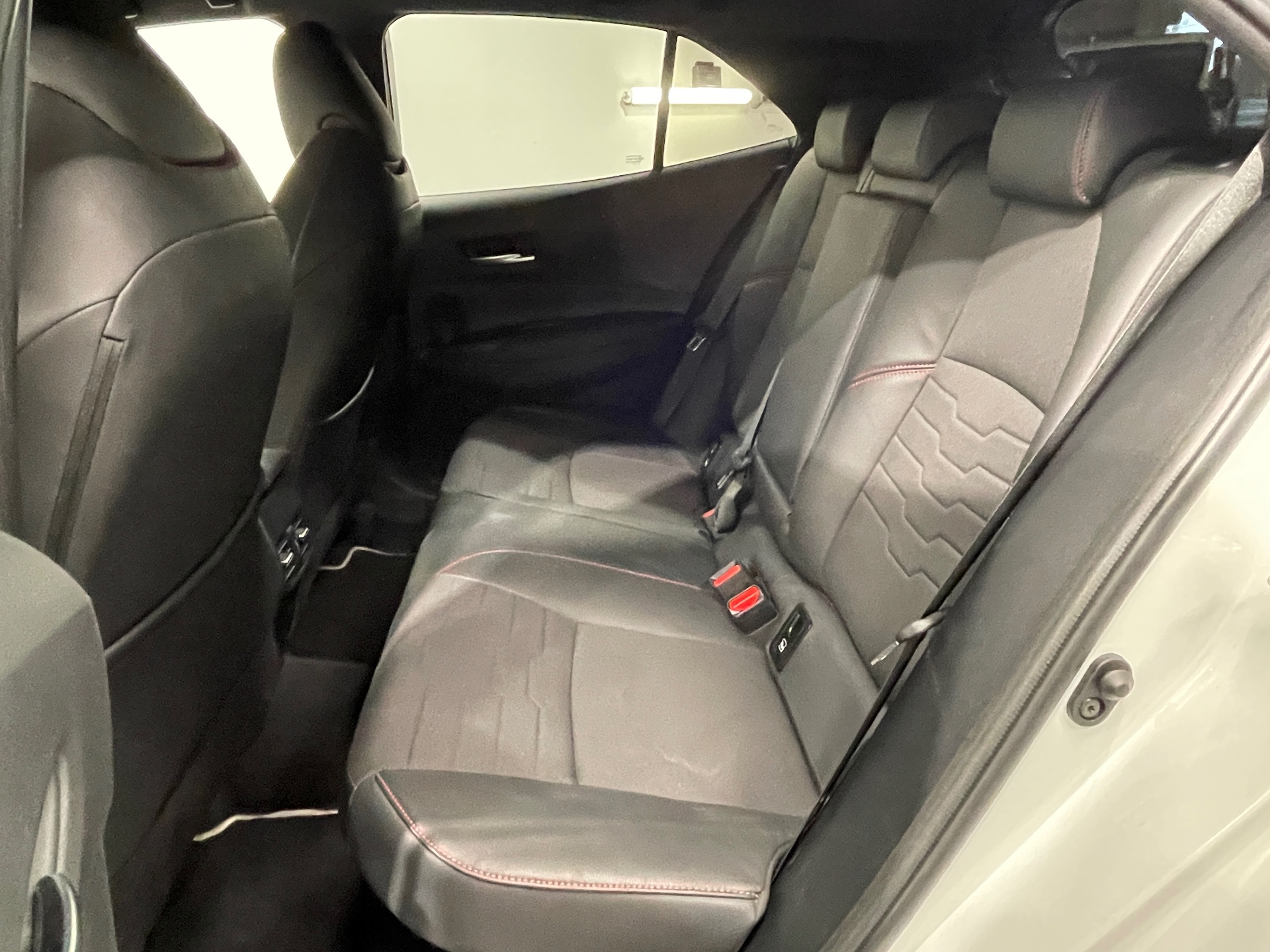 Sellerie mi-cuir noir avec inserts tissu gris et surpiqures rouge et gris - type Sport