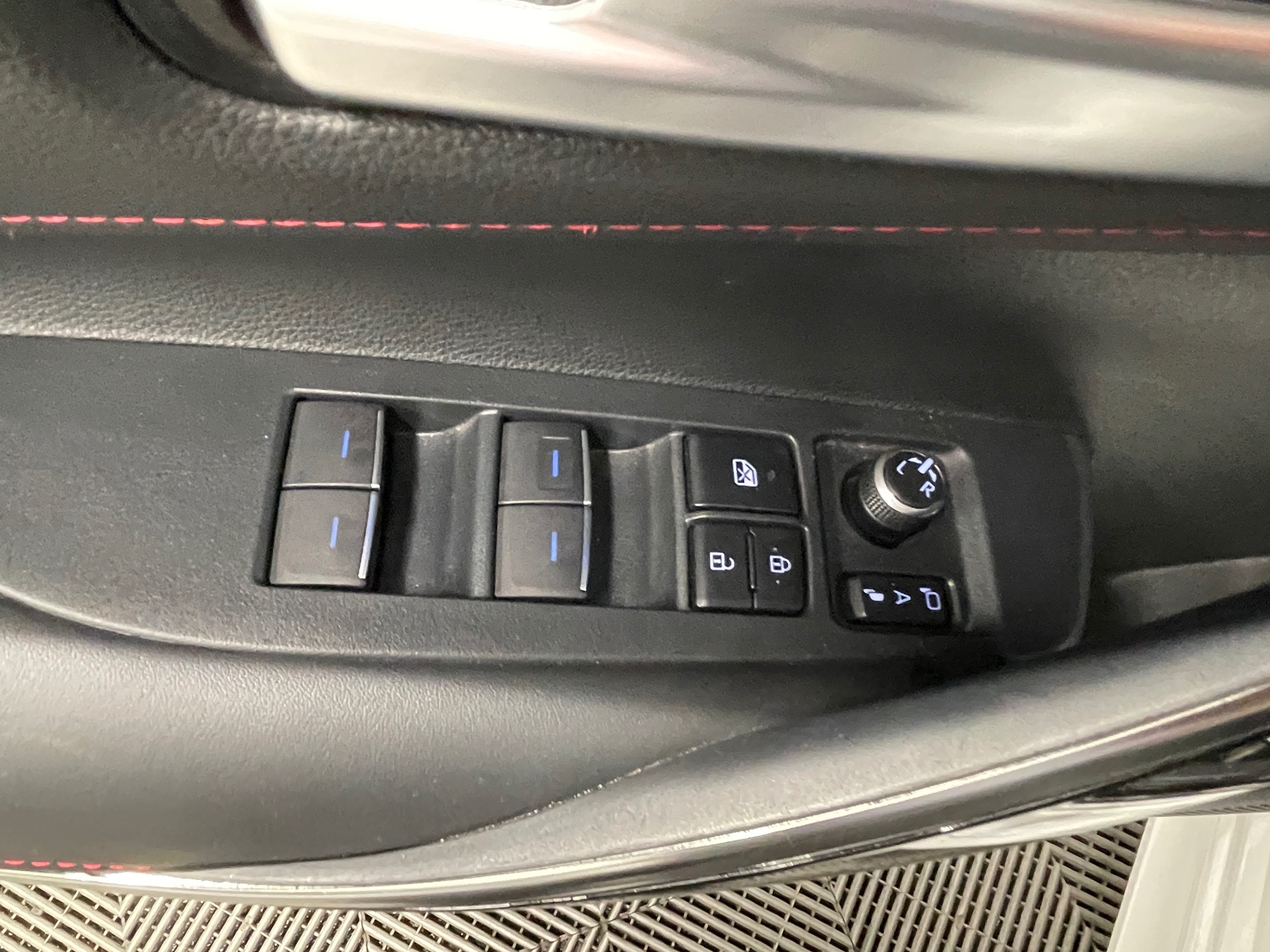 Volant multifonction en cuir perfore avec surpiqures rouges