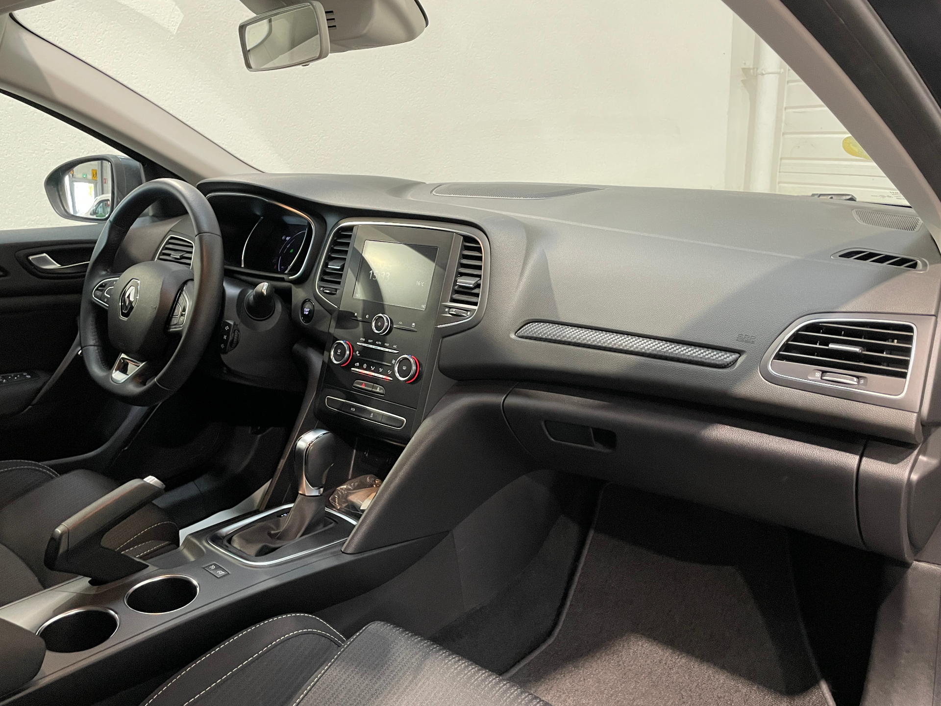 Sellerie tissu carbone fonce avec surpiqures blanches