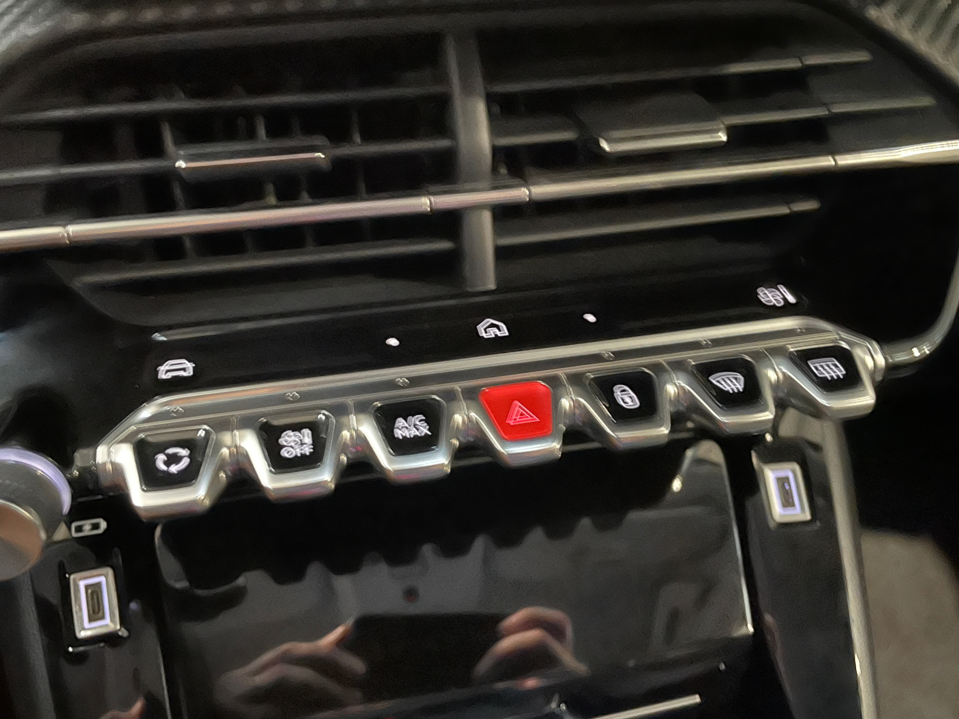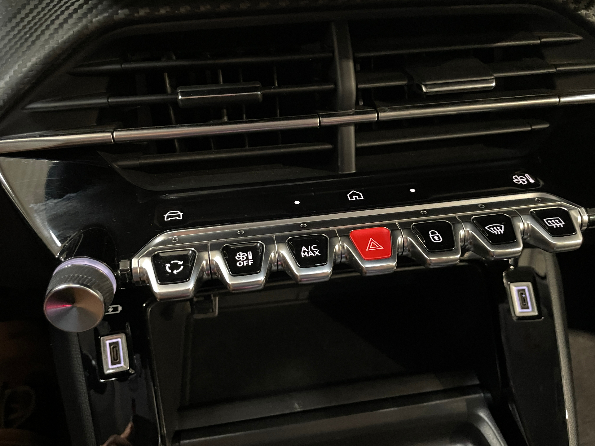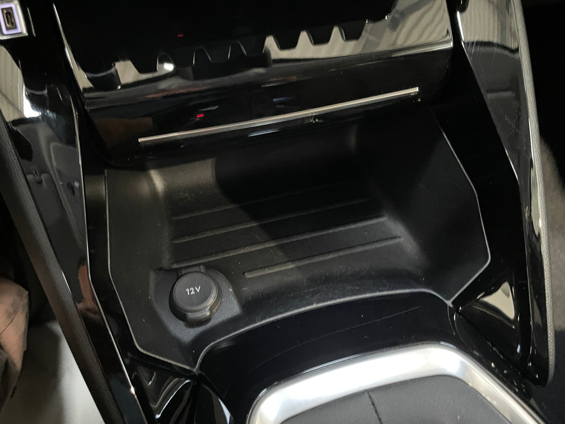 Prise 12V et rangement pour smartphone en facade centrale