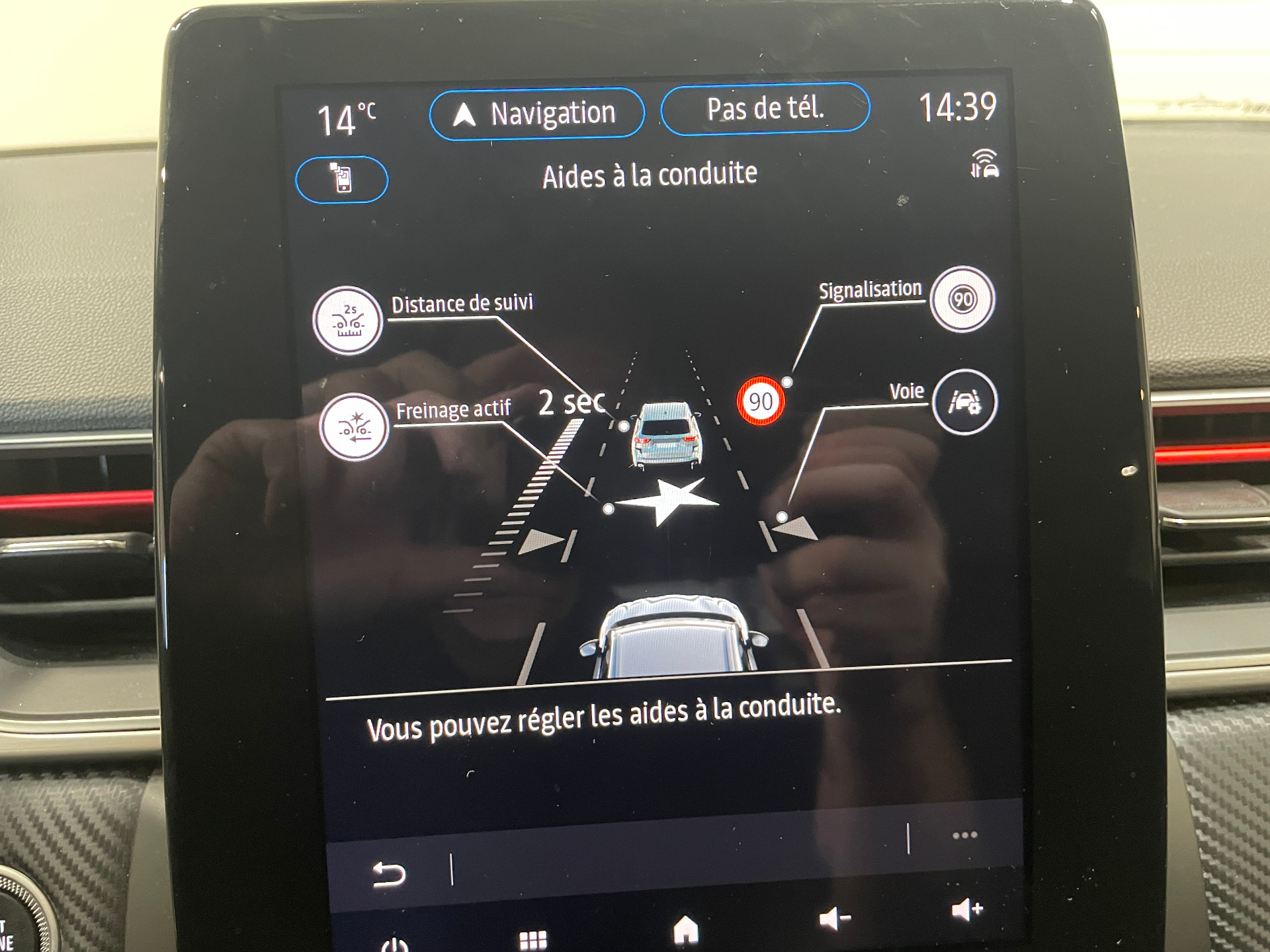 Alerte distance de securite - Information dans tableau de bord