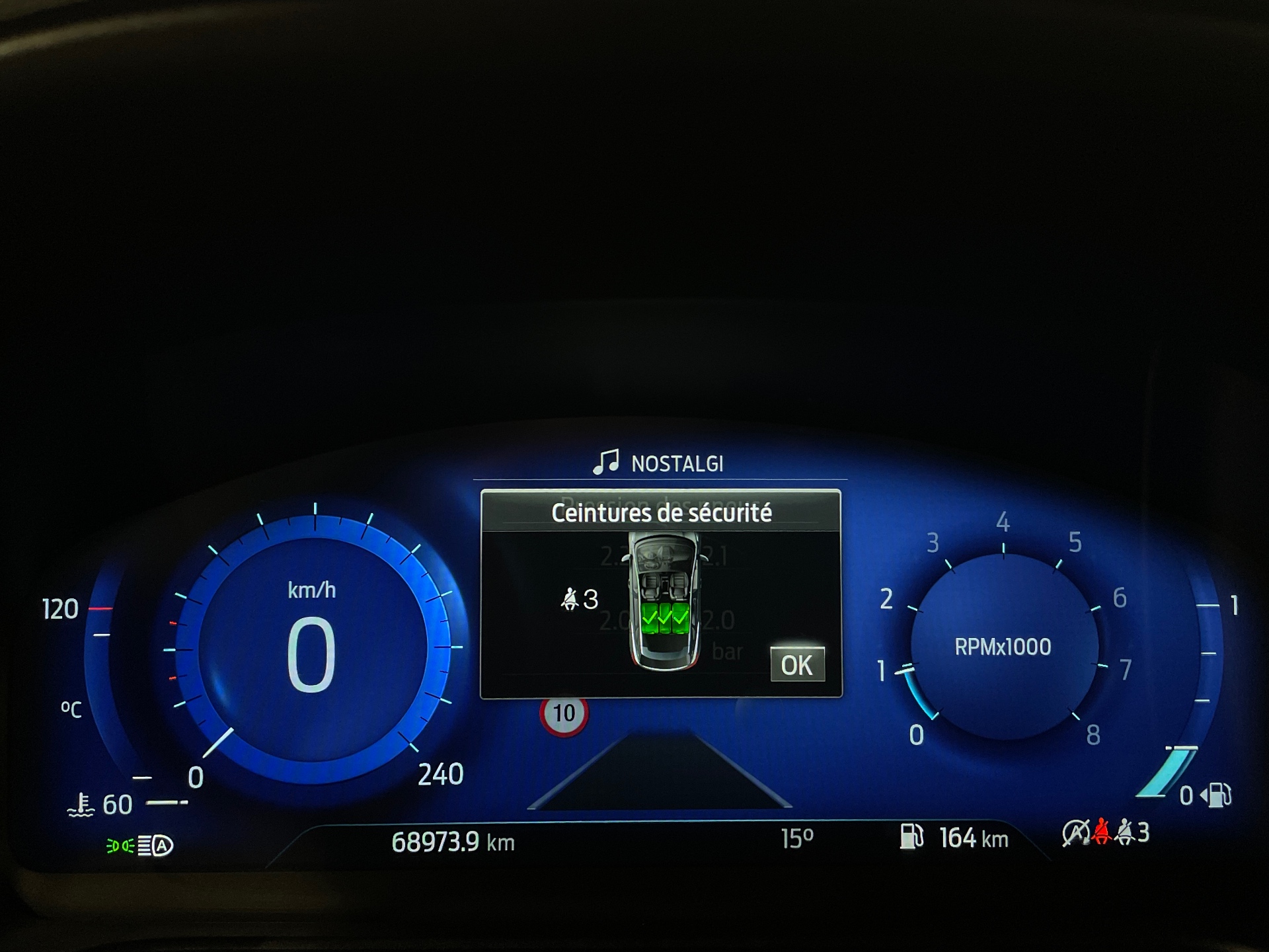 Alerte de ceinture de securite AV/AR