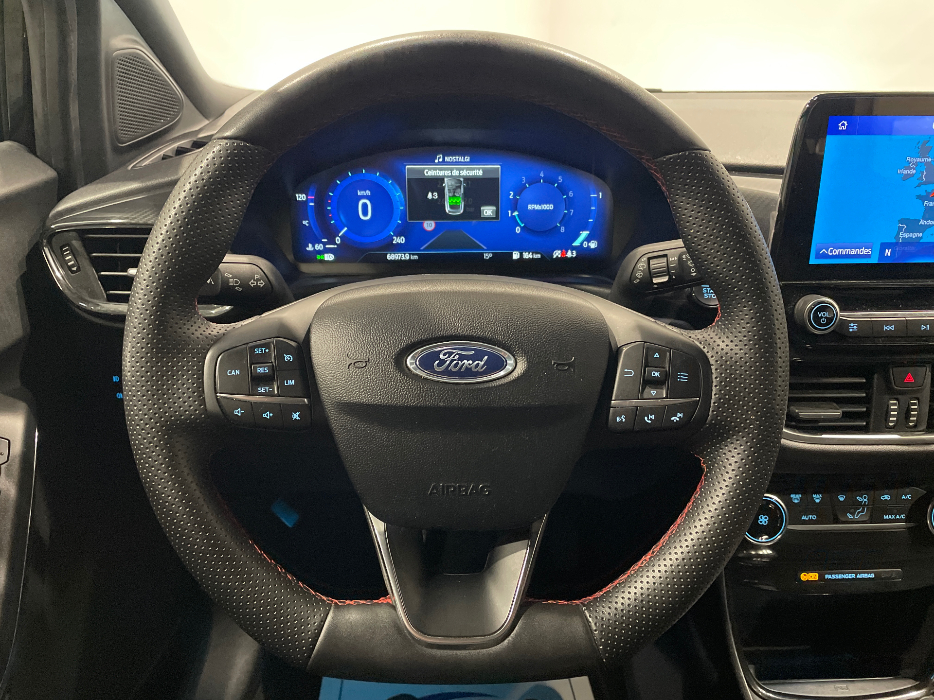 Volant a meplat 3 branches ST-Line avec surpiqures rouges