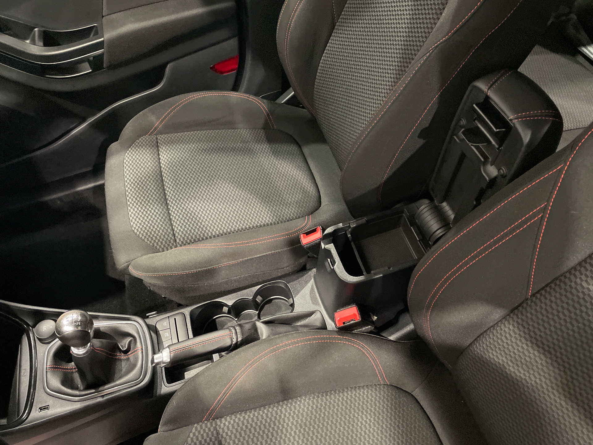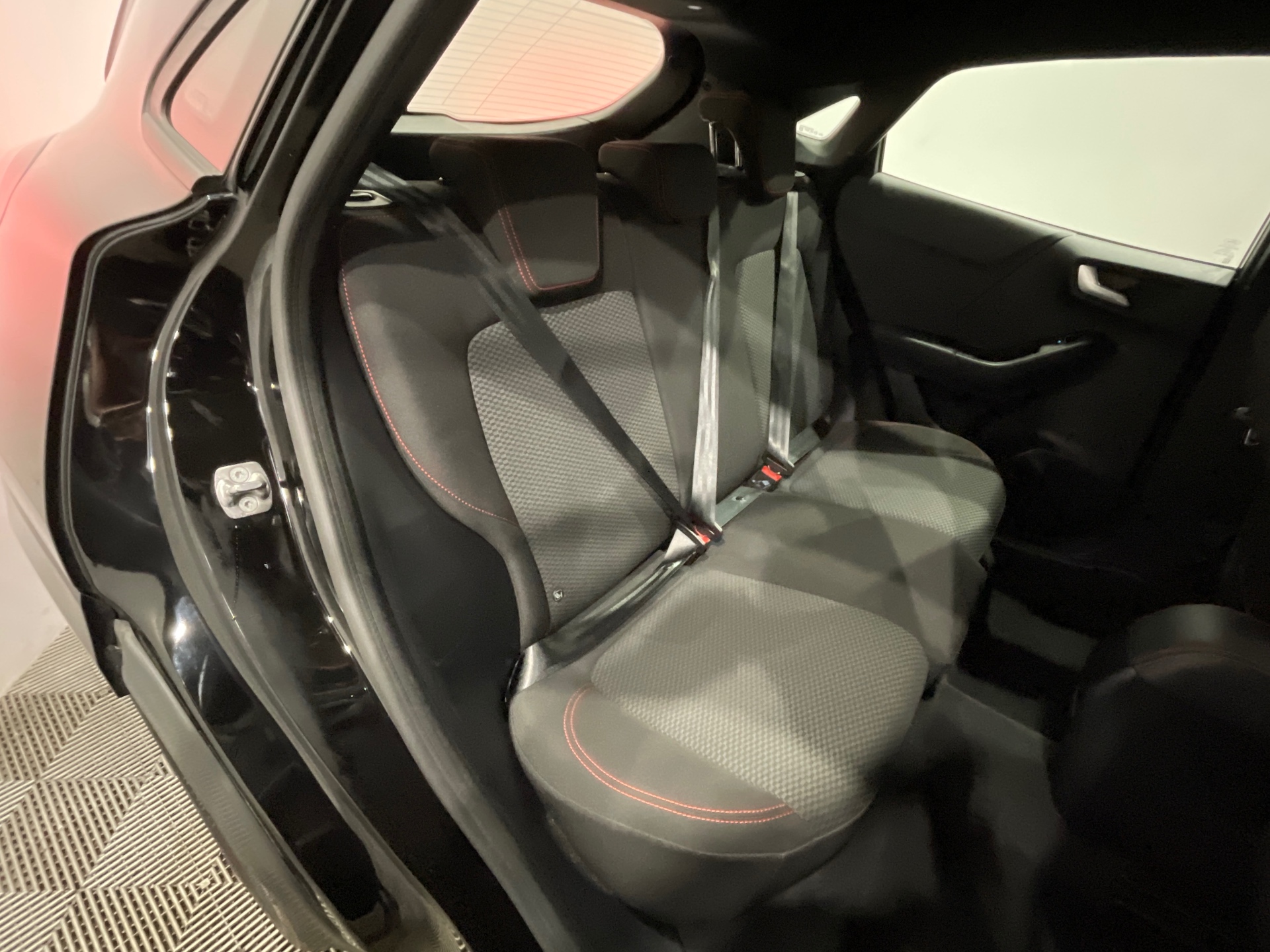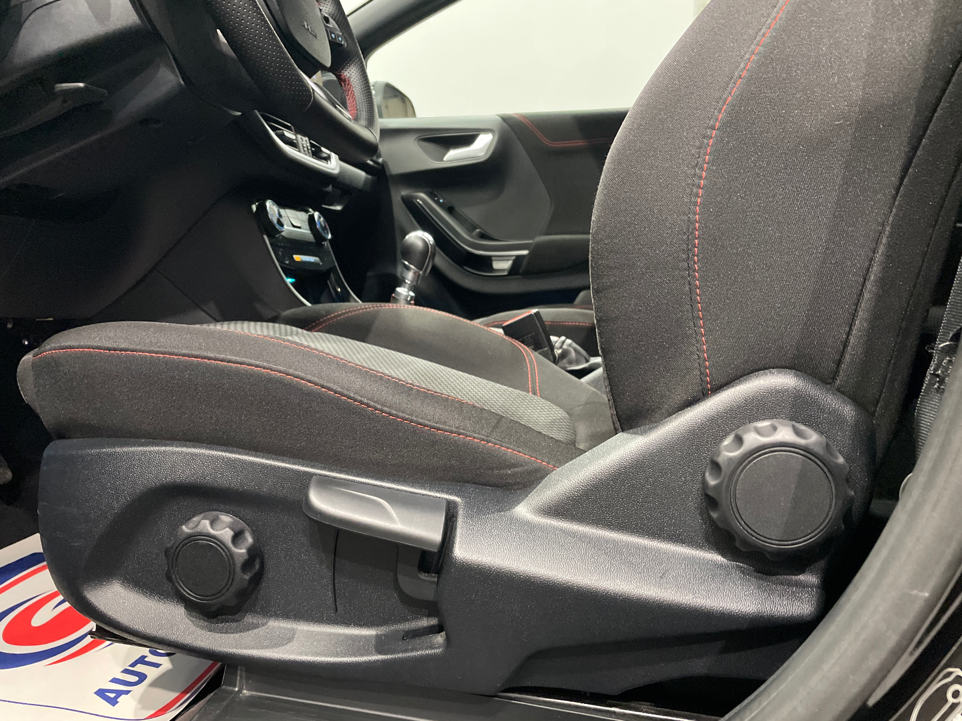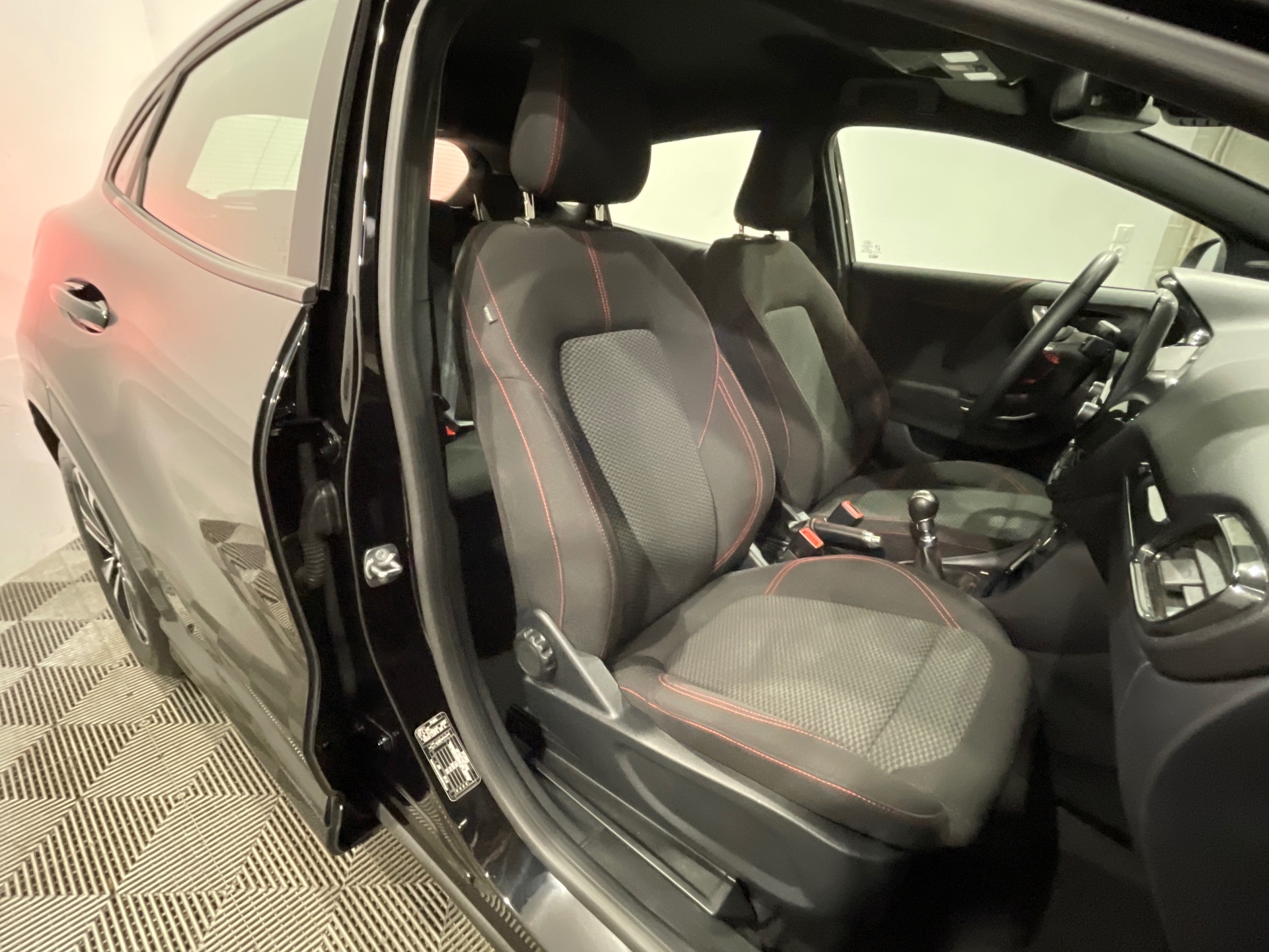 Sellerie tissu noir Court avec surpiqures rouges