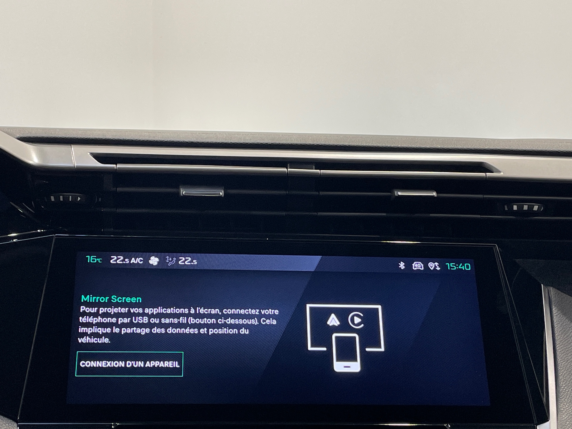 Fonction Mirror Screen (Apple CarPlay/Android Auto) sans fil