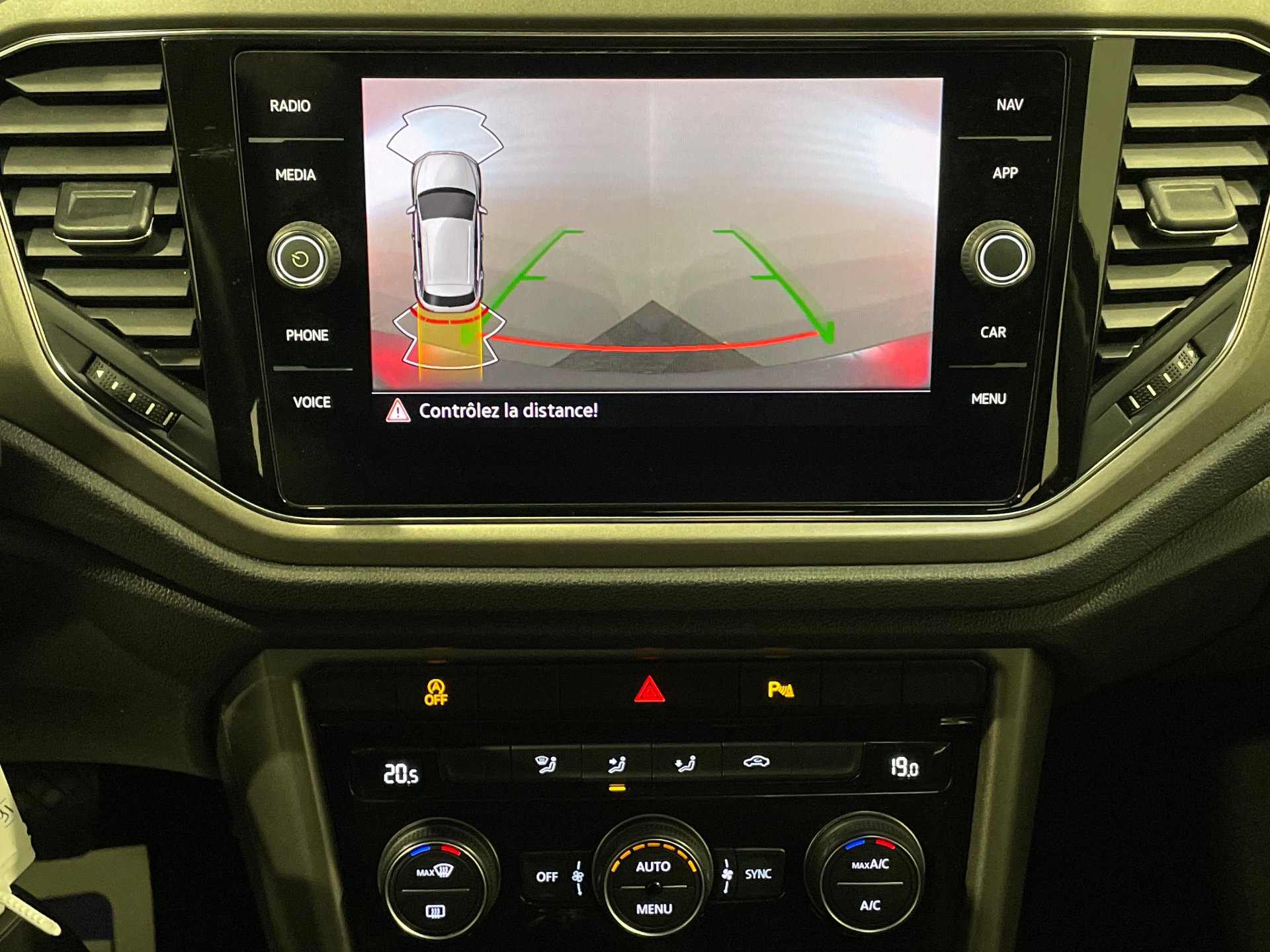 Aide au stationnement AV/AR avec signaux sonores et visualisation de la distance des obstacles sur