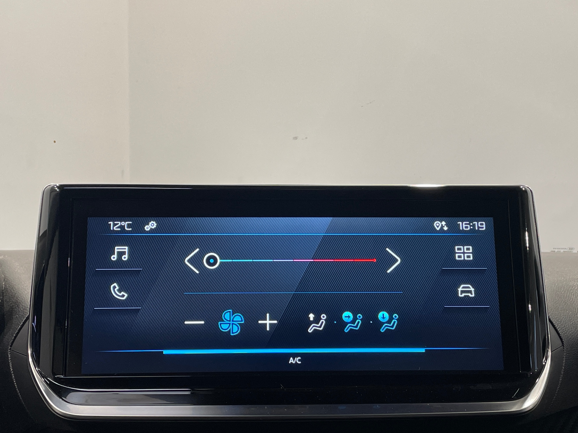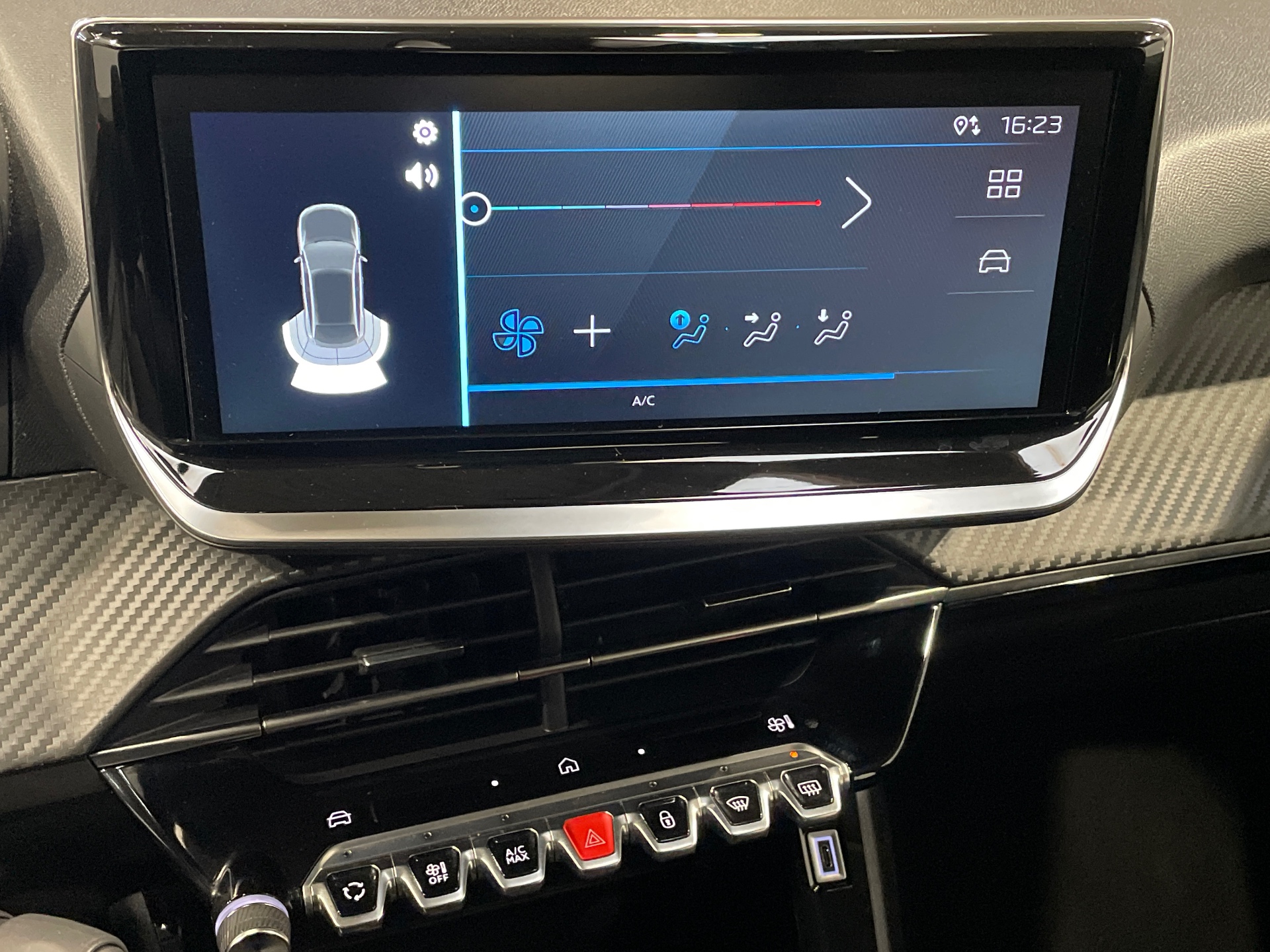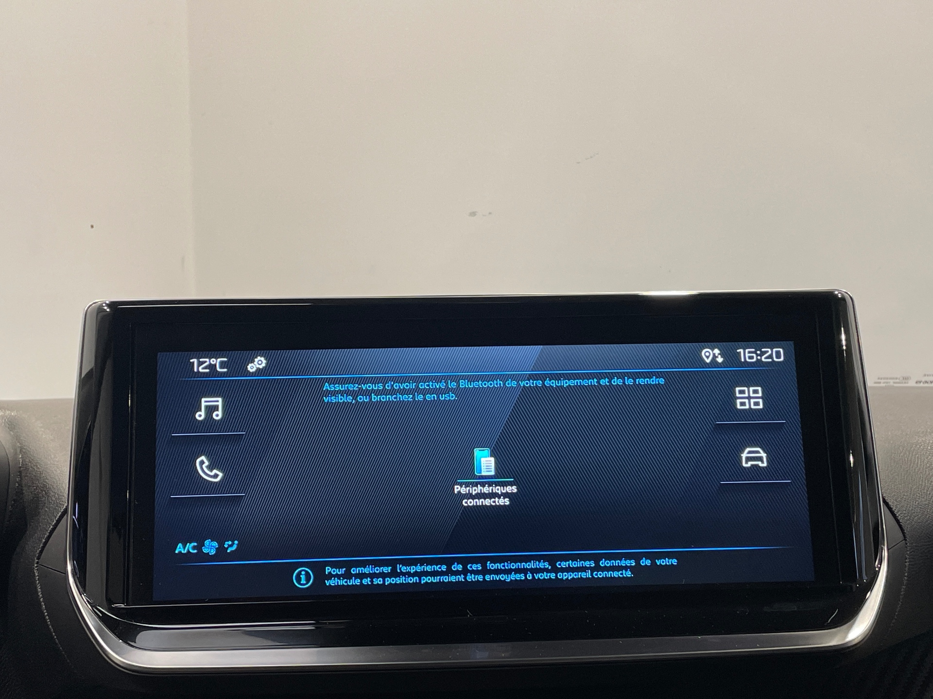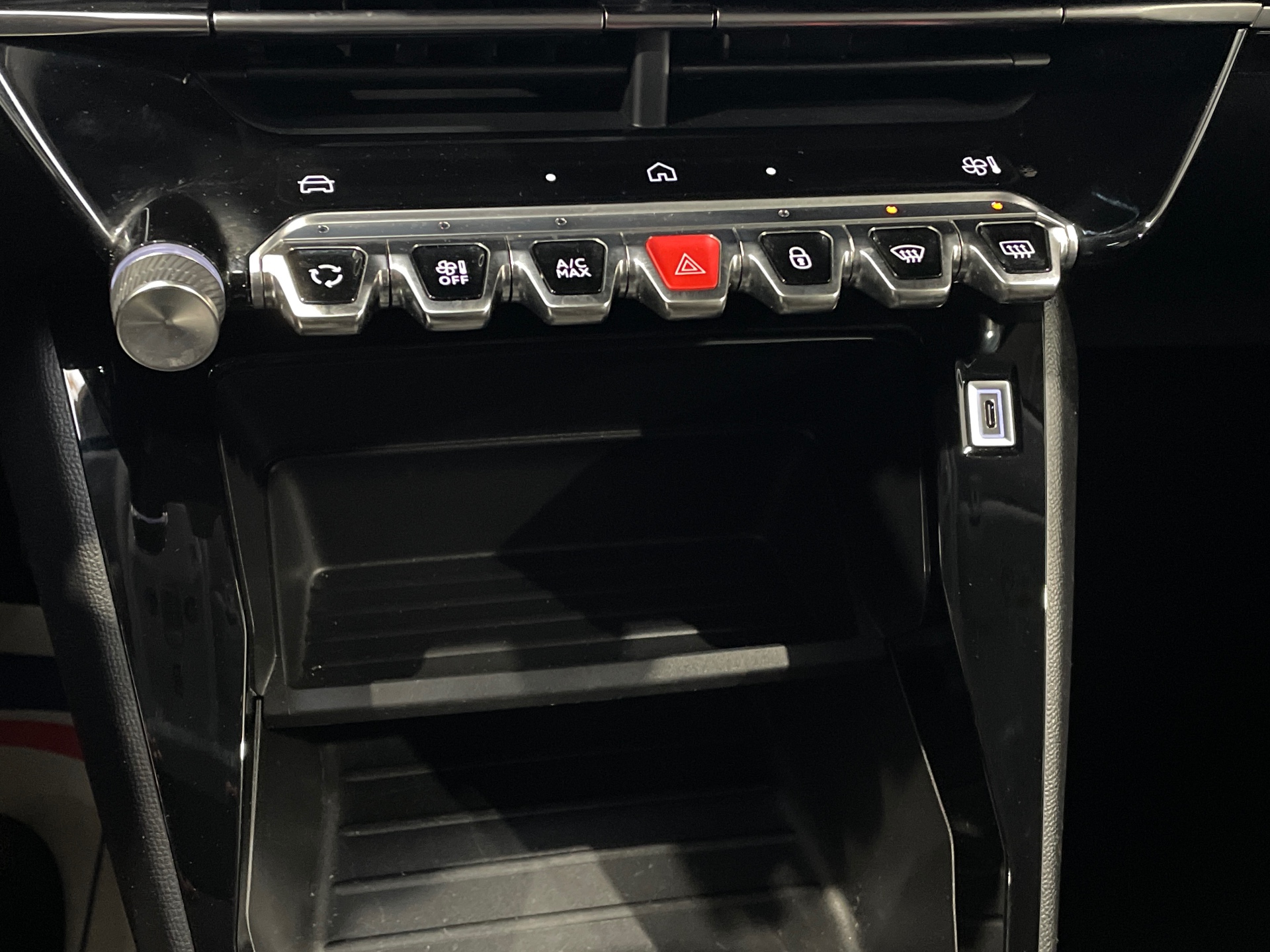 Prise 12V et rangement pour smartphone en facade centrale