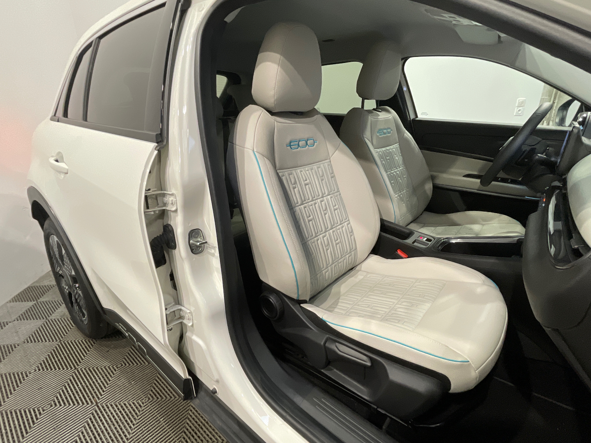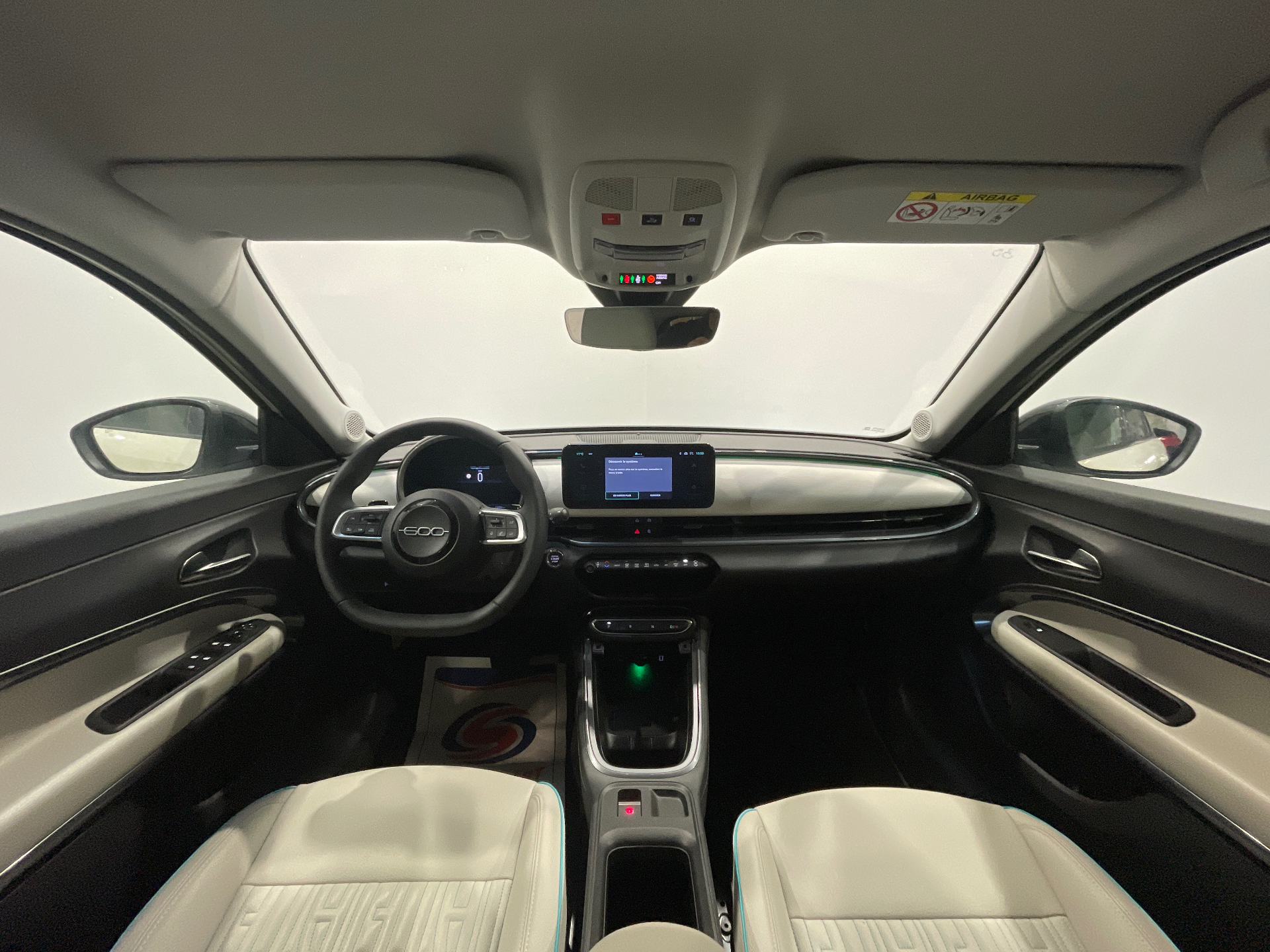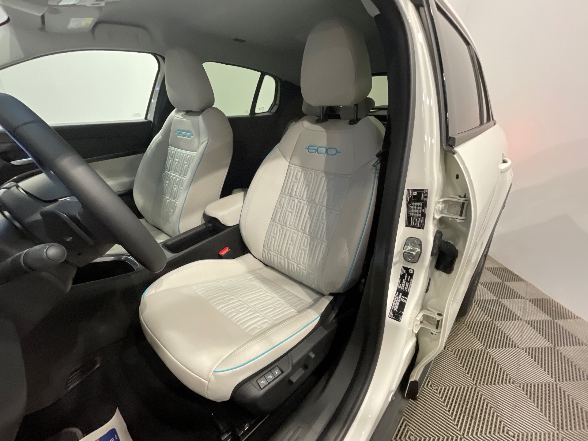 Sellerie premium ivoire soft touch avec monogramme FIAT et logo 600 Bleu Azur