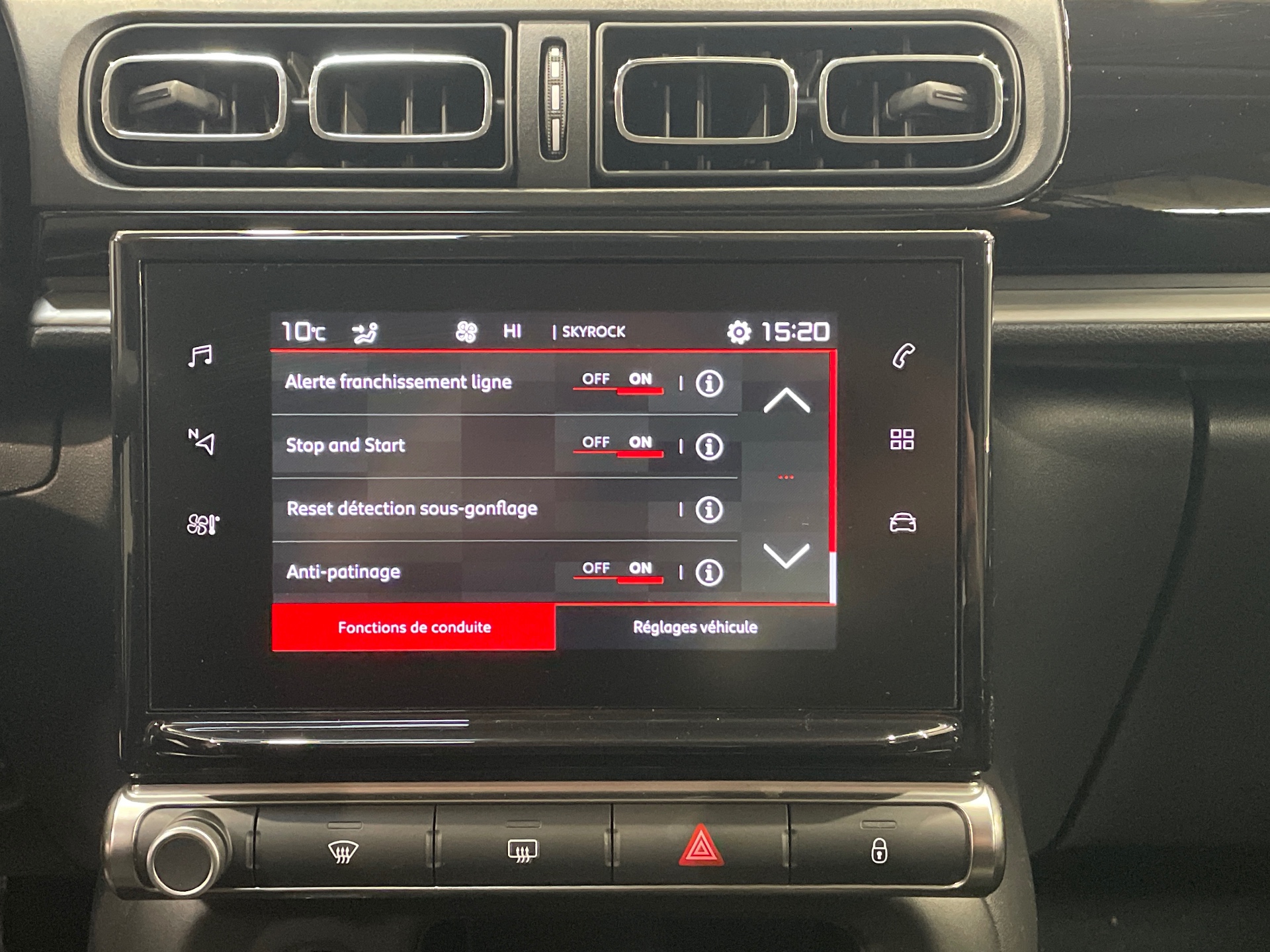 Commandes au volant du systeme audio