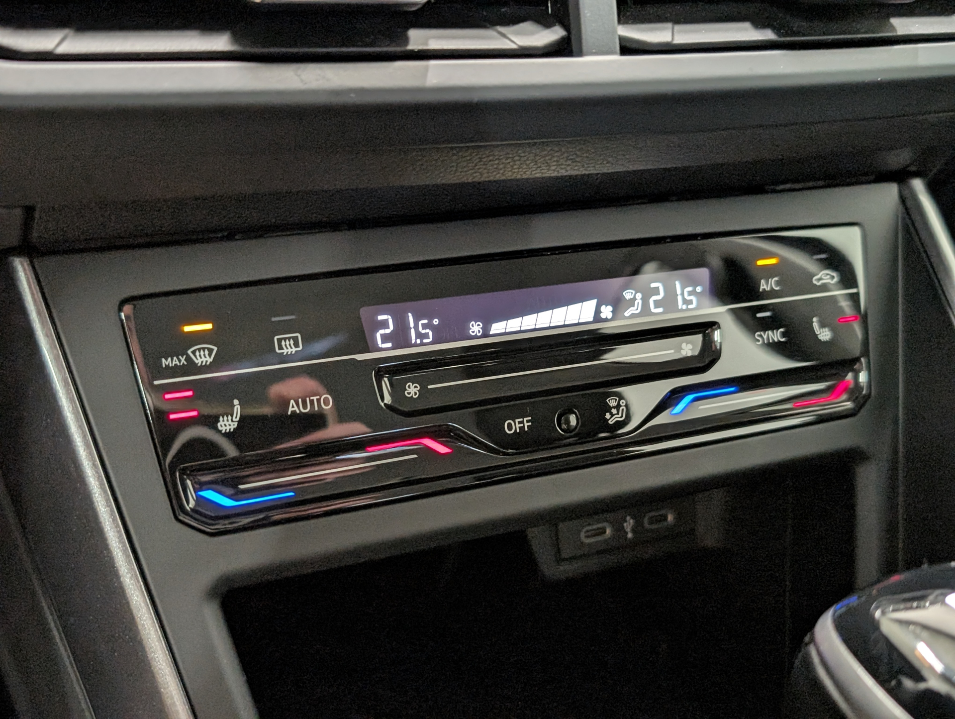 Accoudoir central AV reglable en longueur avec compartiment de rangement et 2 ports USB-C de
