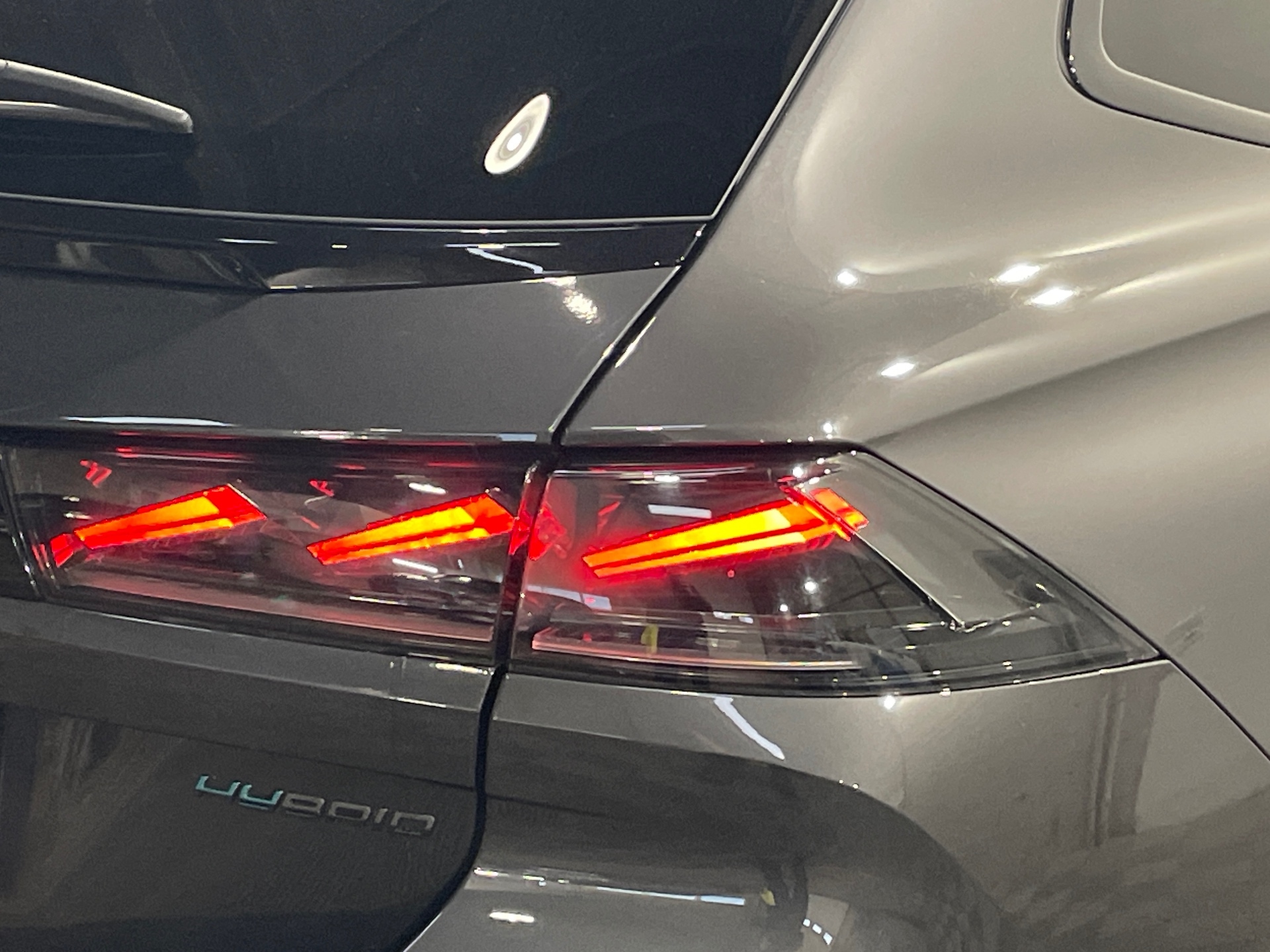 Badge "HYBRID" sur volet de coffre