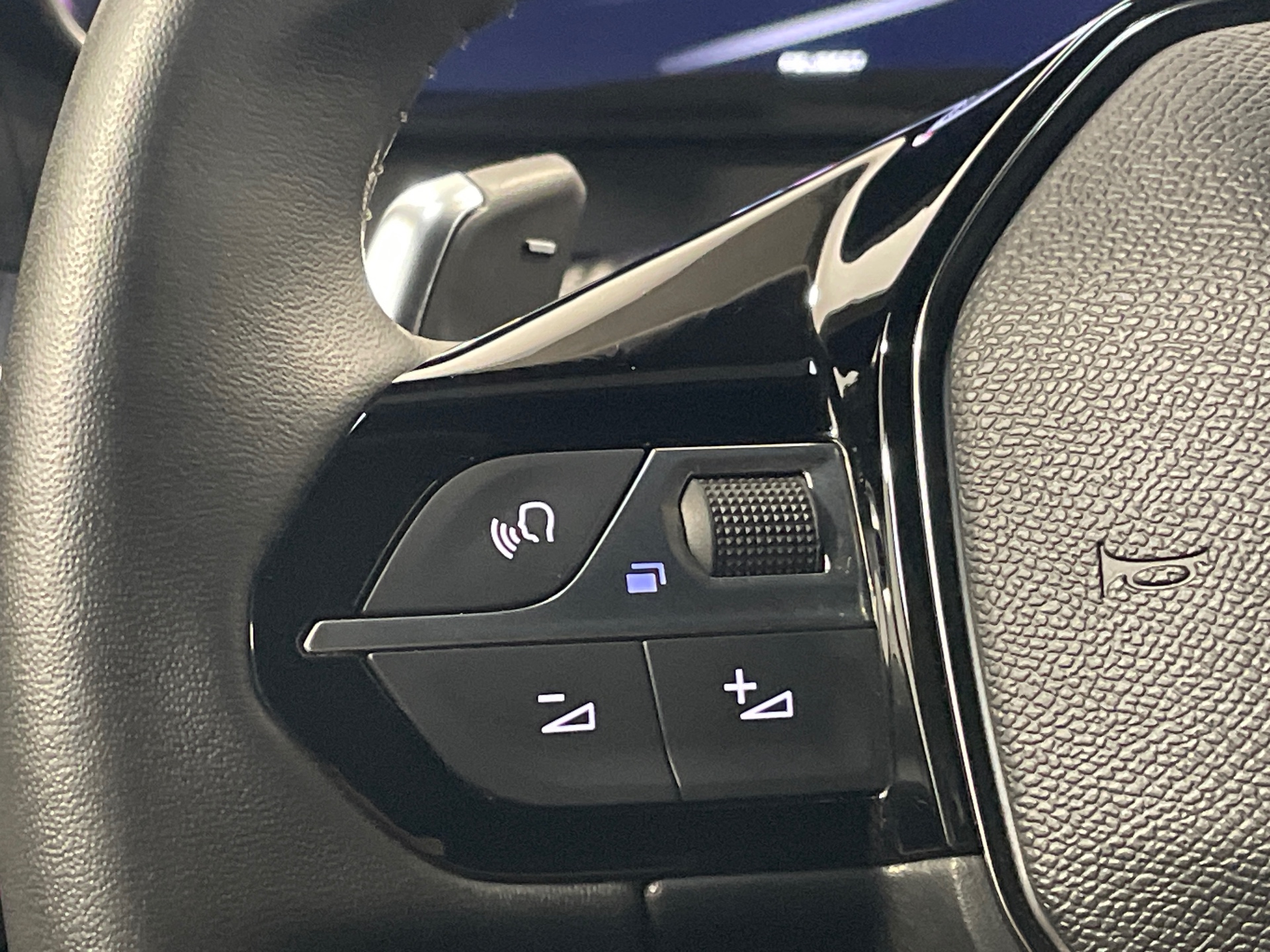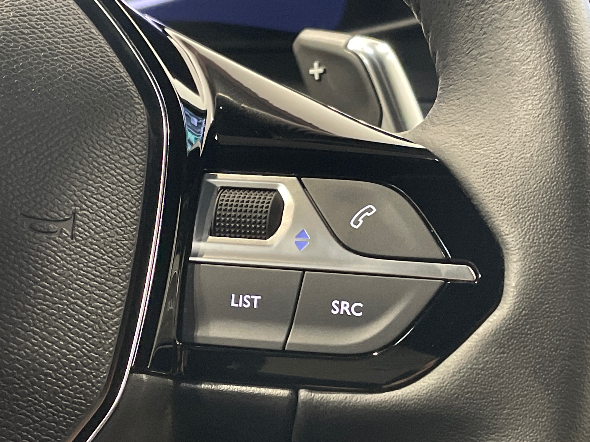 Volant compact en croute de cuir avec commandes multimedia integrees