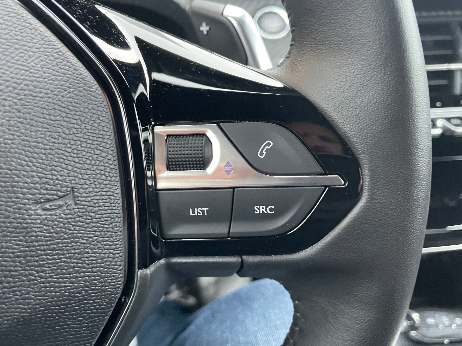 Volant compact en croute de cuir avec commandes multimedia integrees