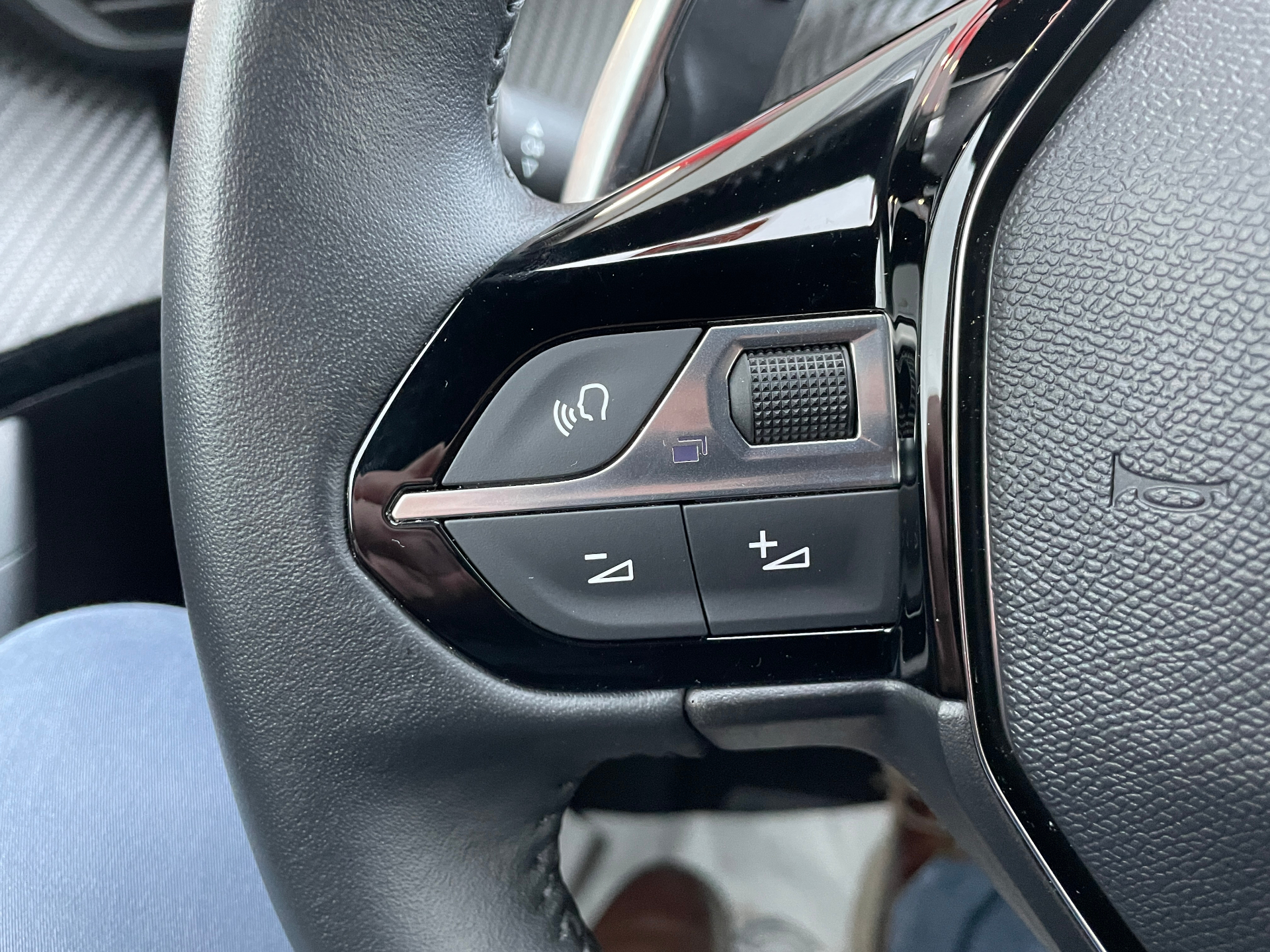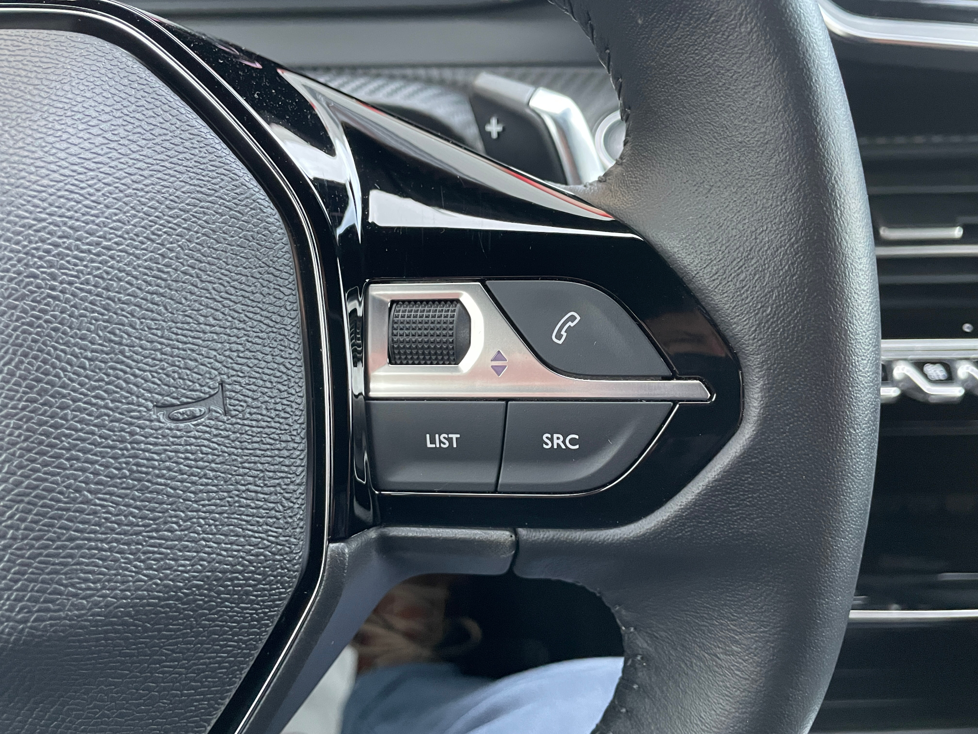 Volant compact en croute de cuir avec commandes multimedia integrees