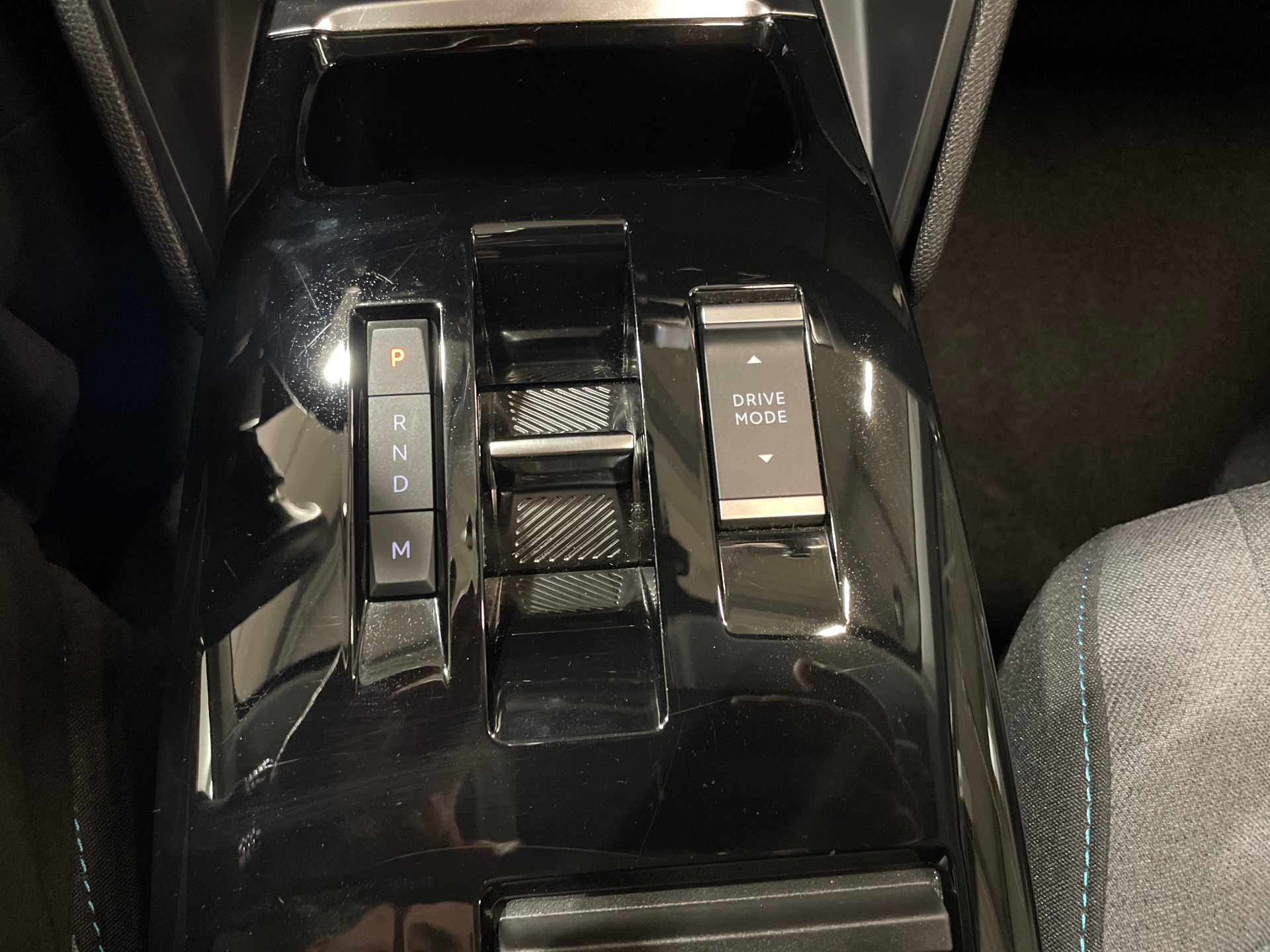 Console centrale haute avec rangements et accoudoir