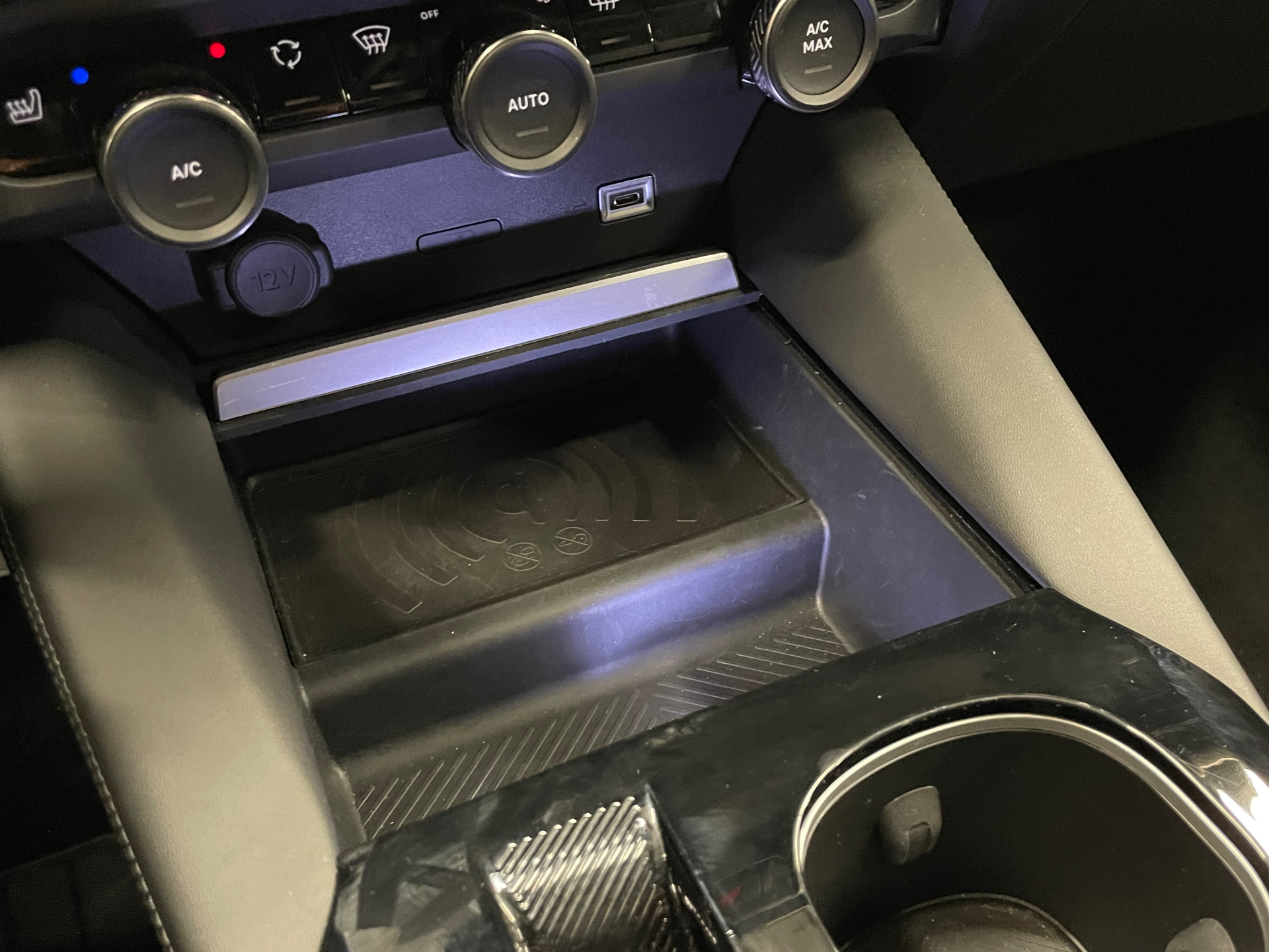Rangement depose Smartphone devant l'accoudoir central