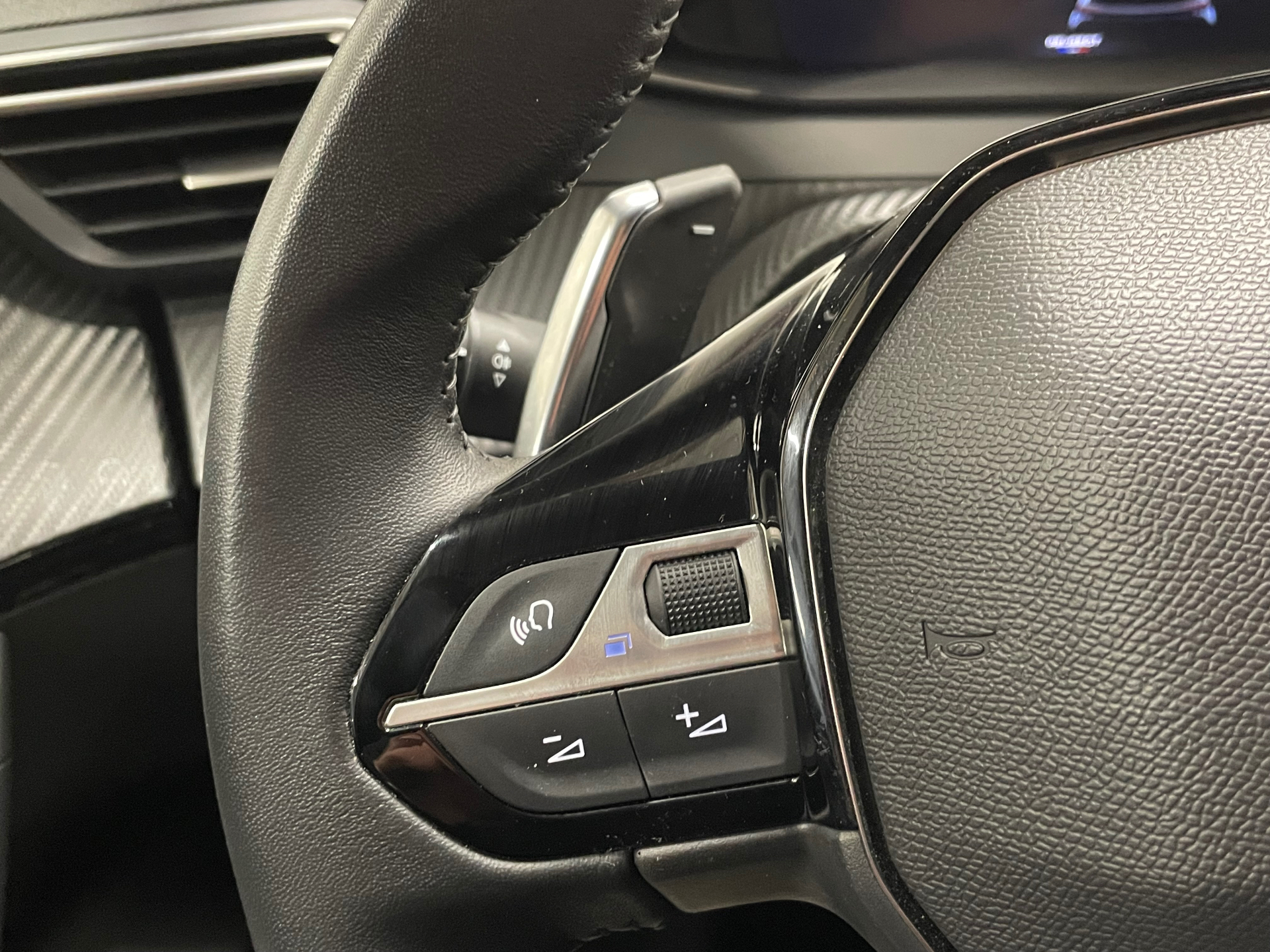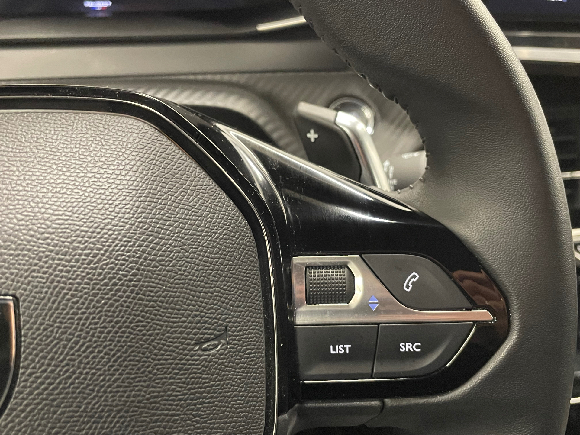 Volant compact en croute de cuir avec commandes multimedia integrees