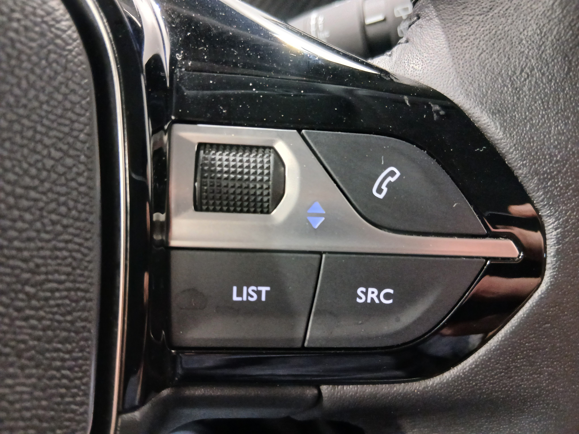 Volant compact en croute de cuir avec commandes multimedia integrees