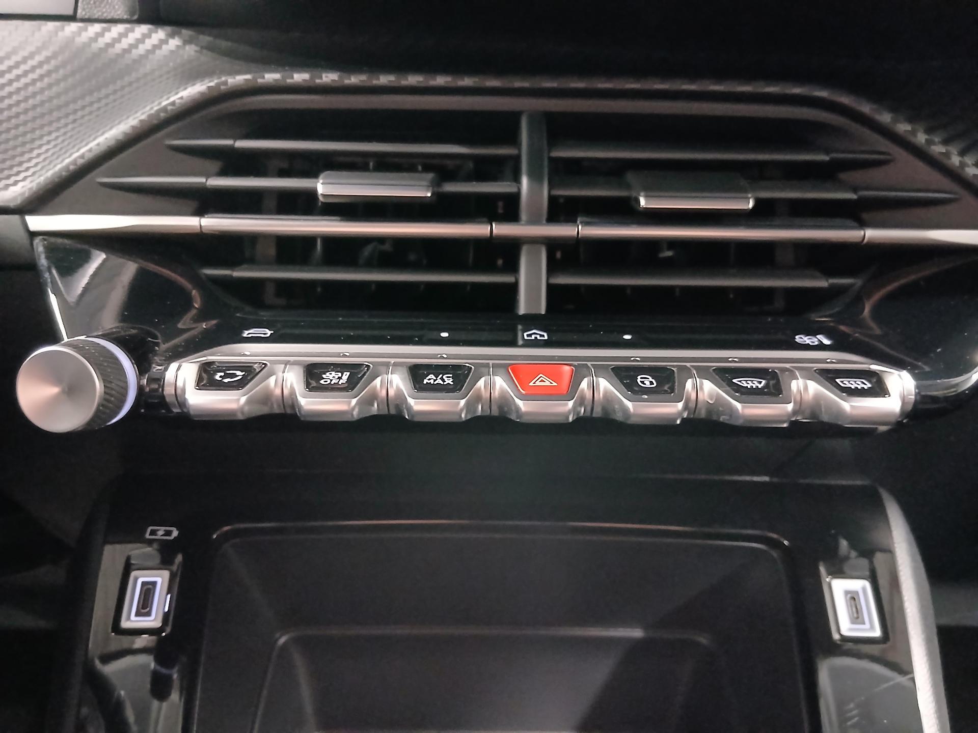Prise 12 V et rangement pour smartphone en facade centrale