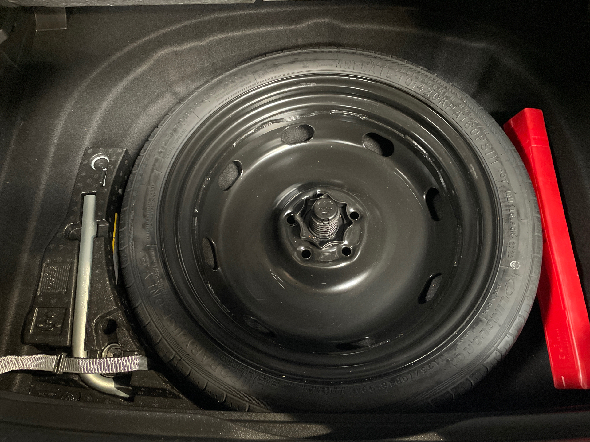 Roue de secours a encombrement reduit avec cric