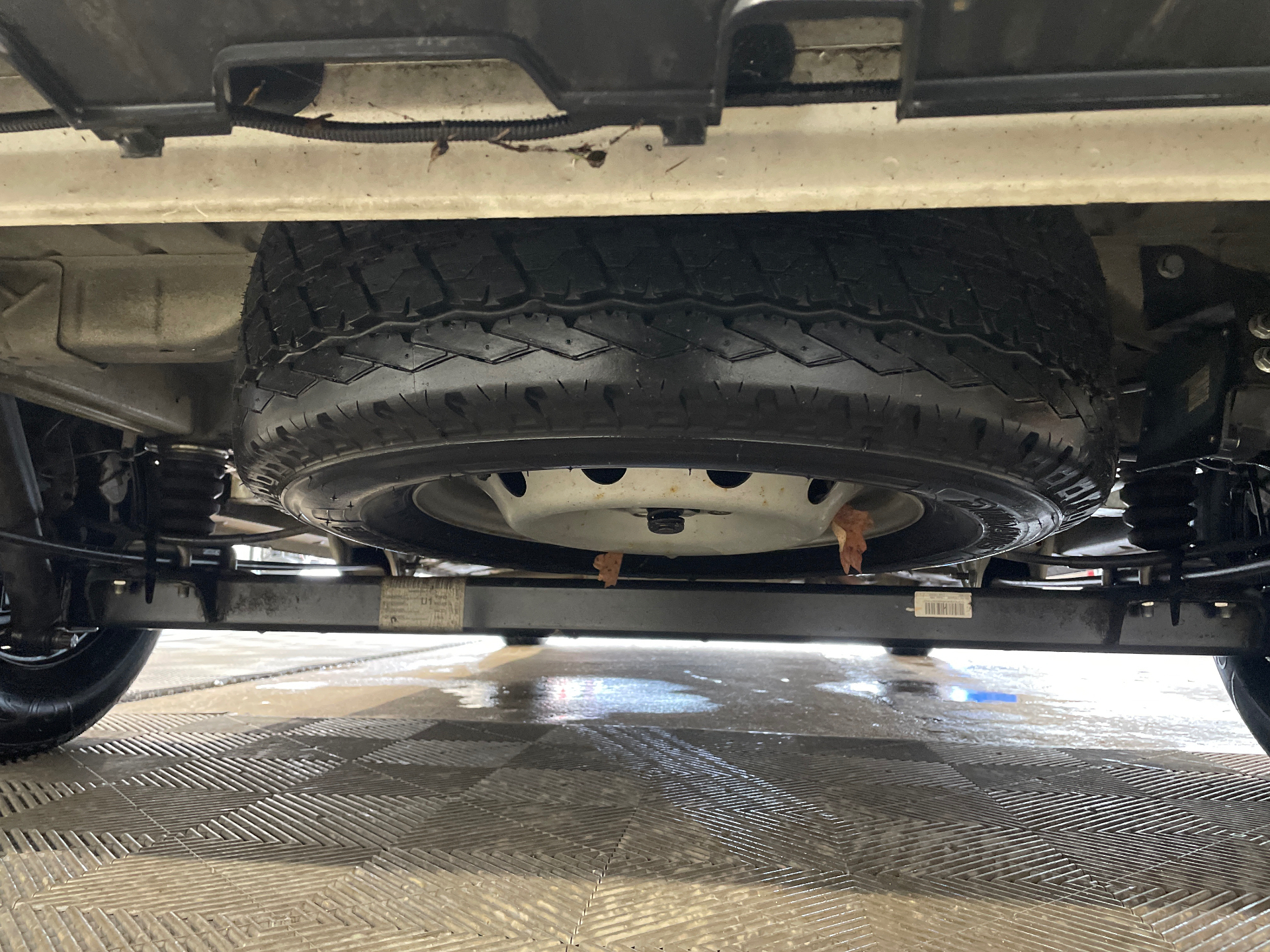 Roue de secours sous plancher positionnable avec treuil