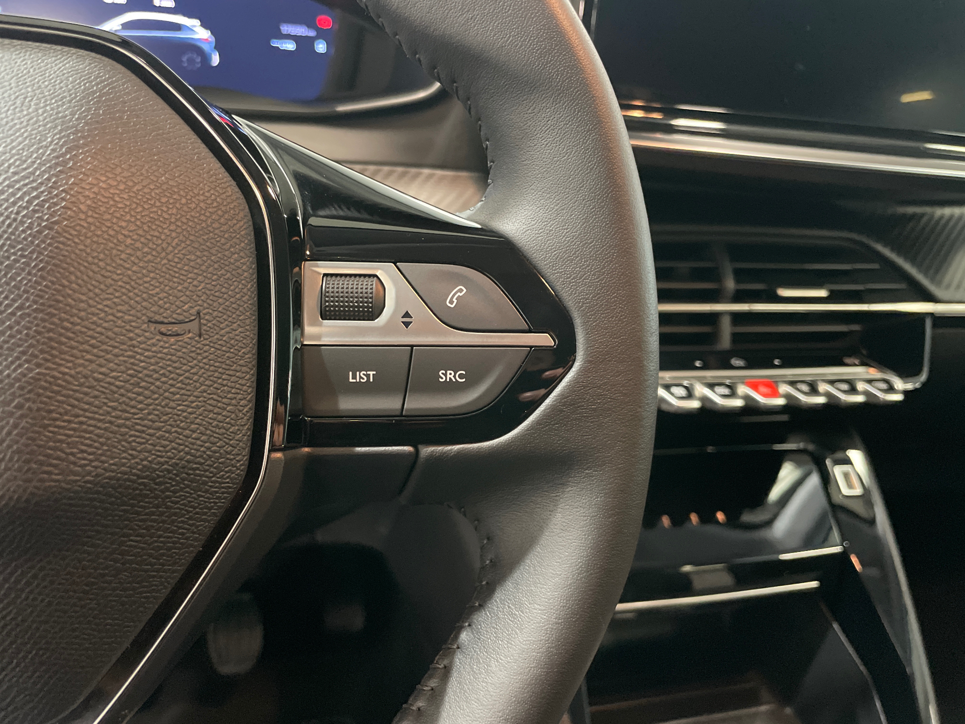 Volant compact en croute de cuir avec commandes multimedia integrees