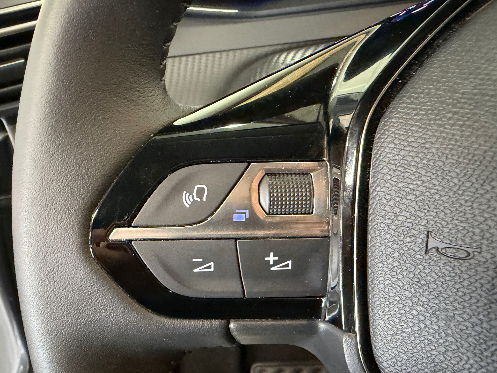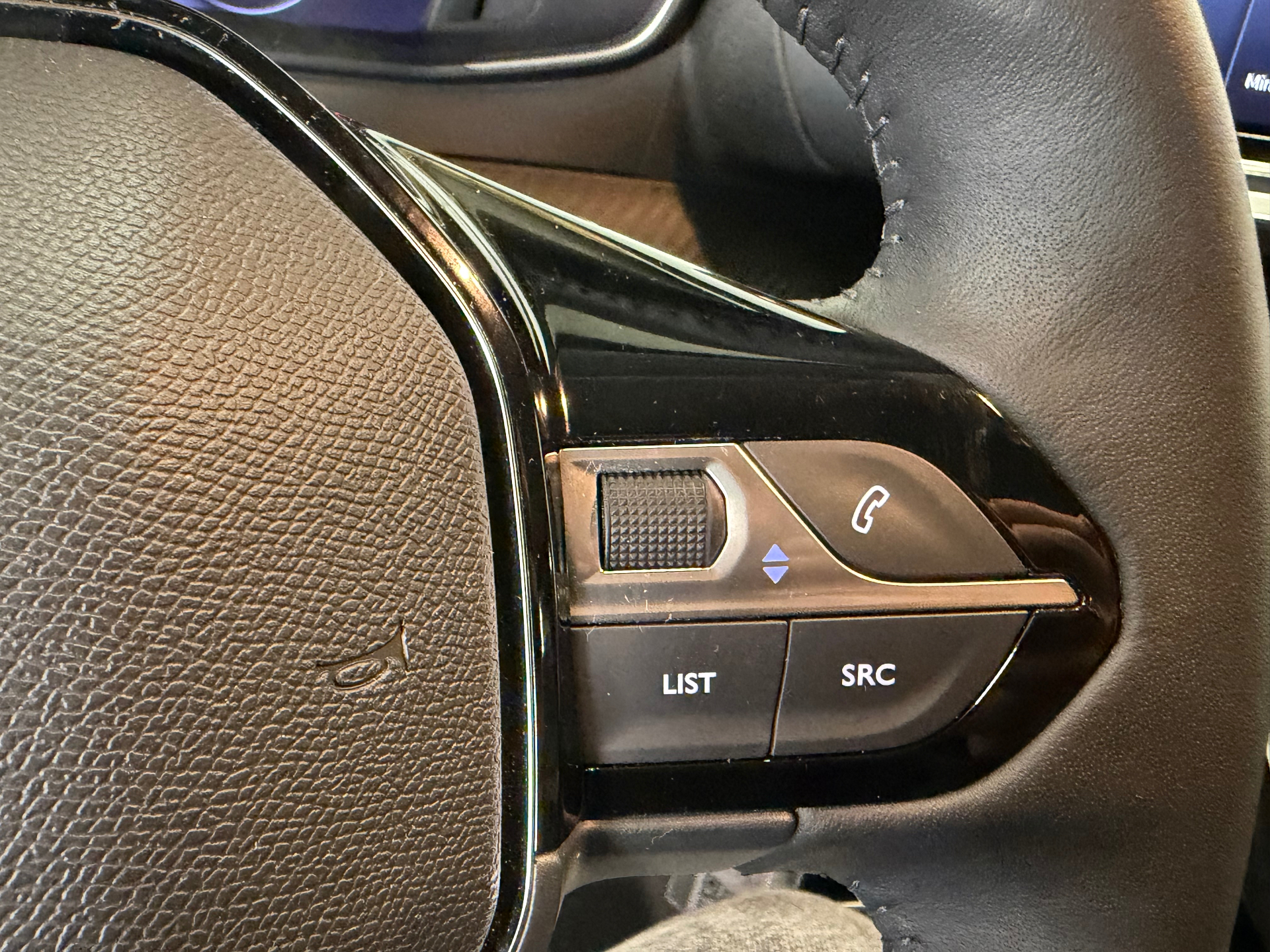 Volant compact en croute de cuir avec commandes multimedia integrees