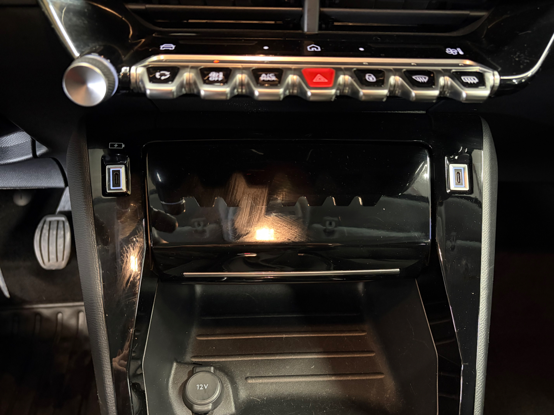 Prise 12 V et rangement pour smartphone en facade centrale