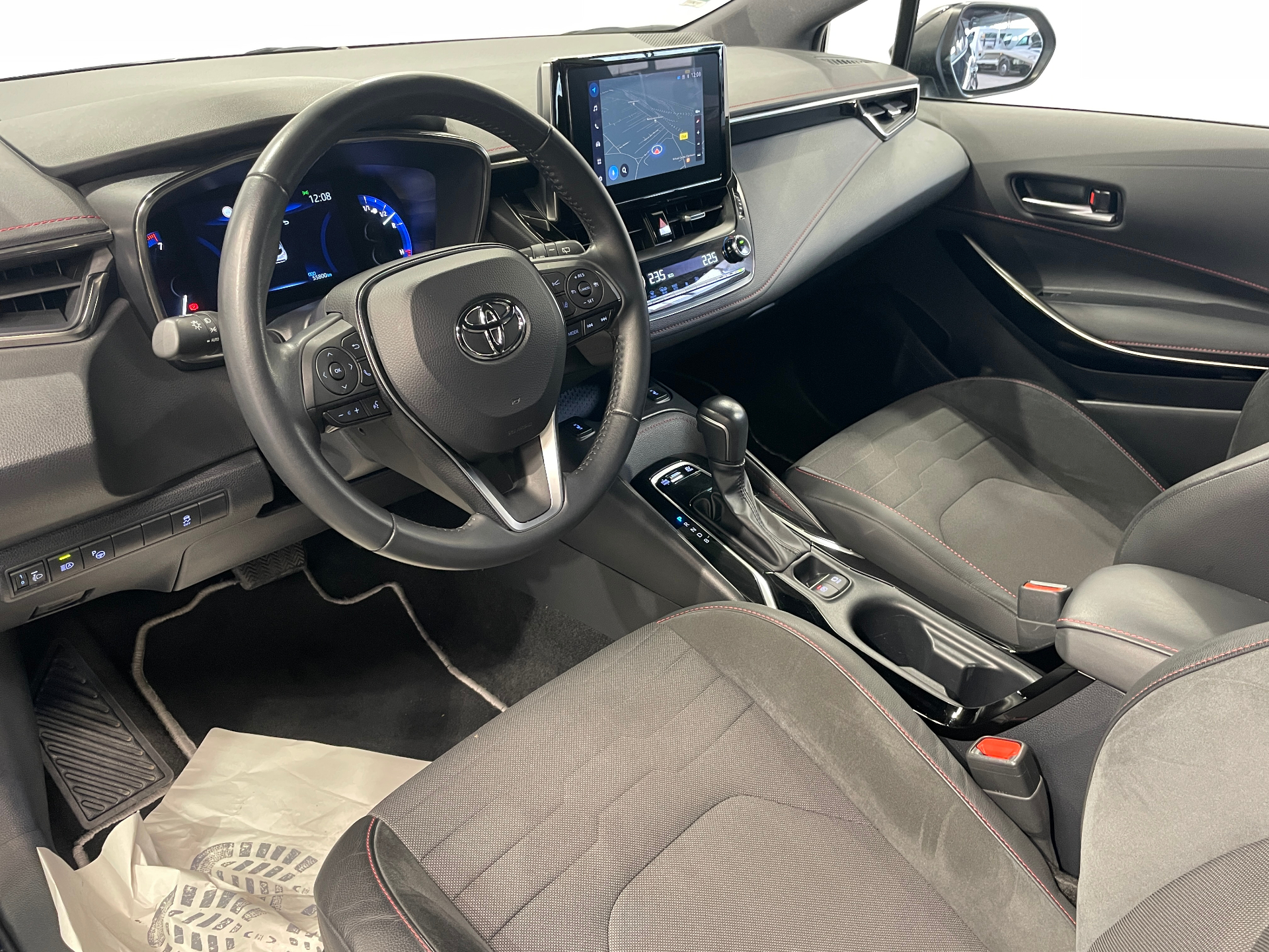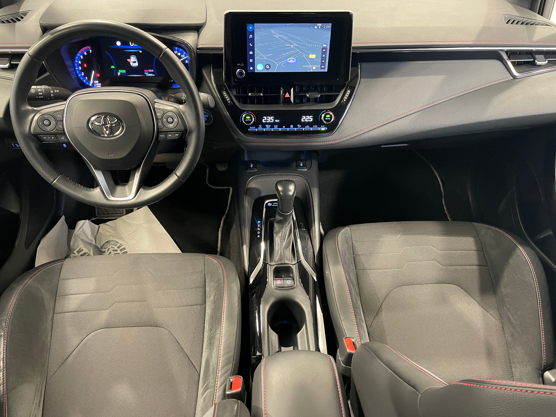 Planche de bord avec surpiqures rouges