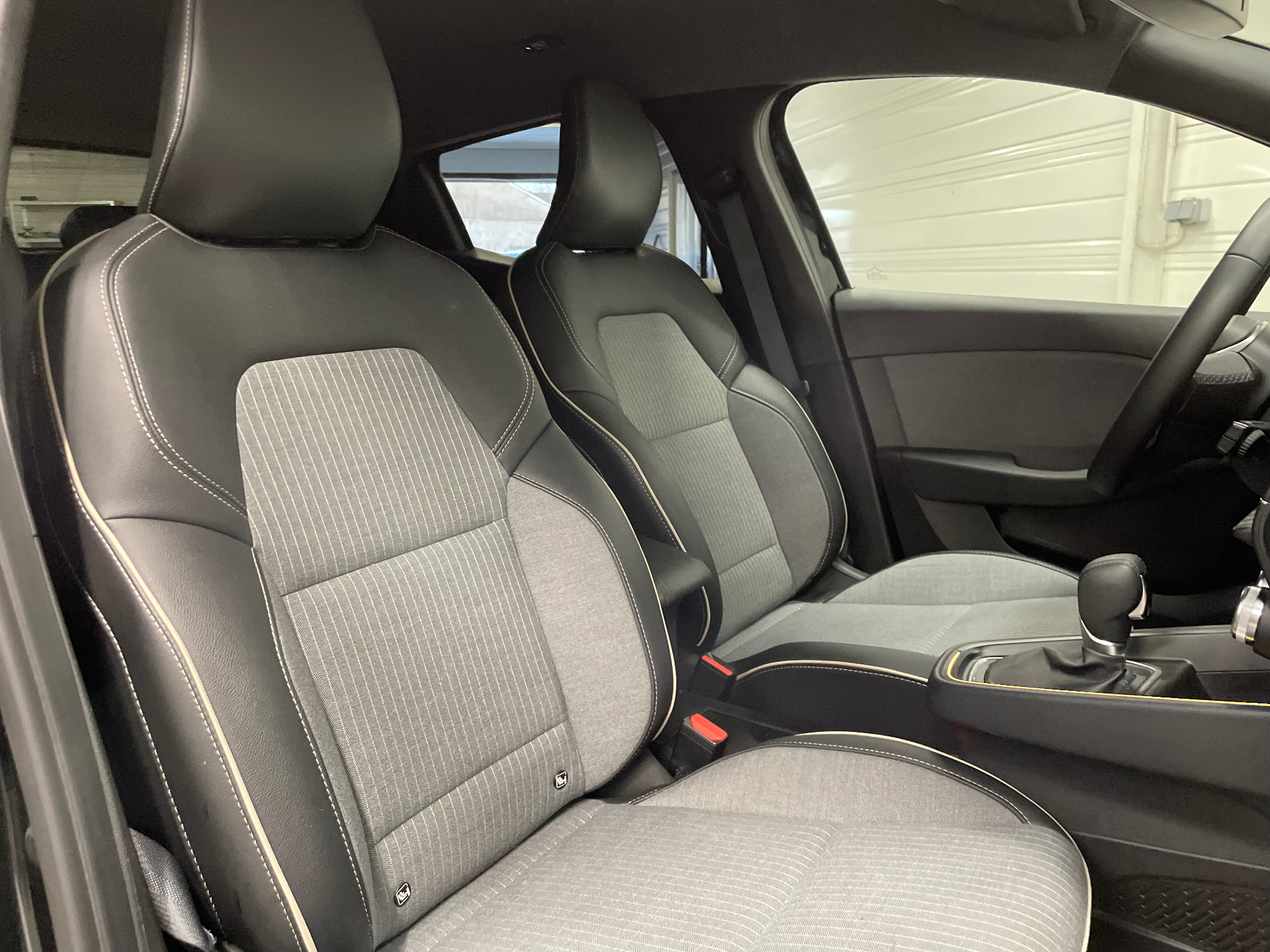 Sellerie textile et textile enduit graine gris/noir avec surpiqures cuivre