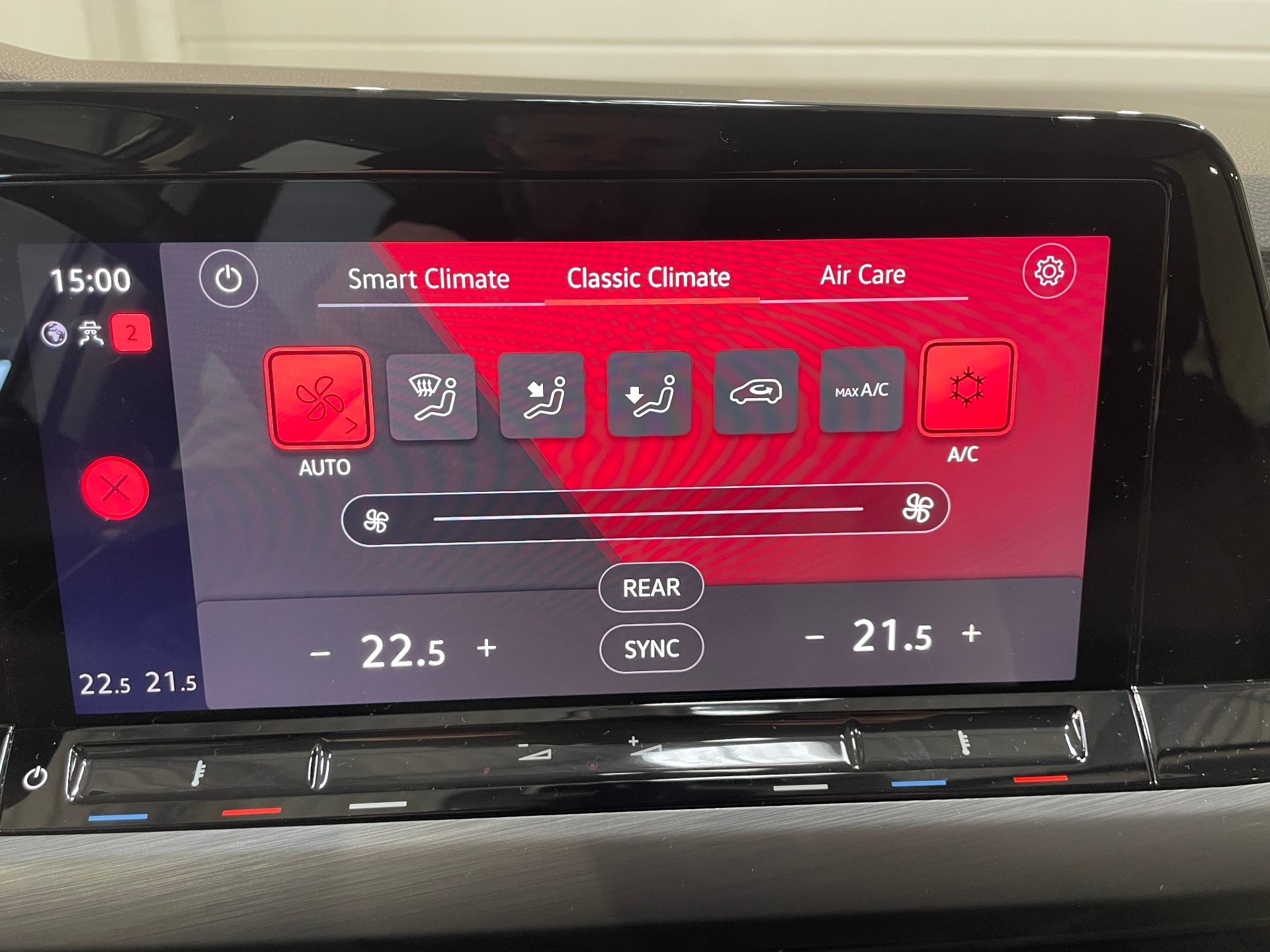 Climatiseur "Air Care Climatronic" 3 zones et filtre anti-allergene et elements de commandes a l'AR