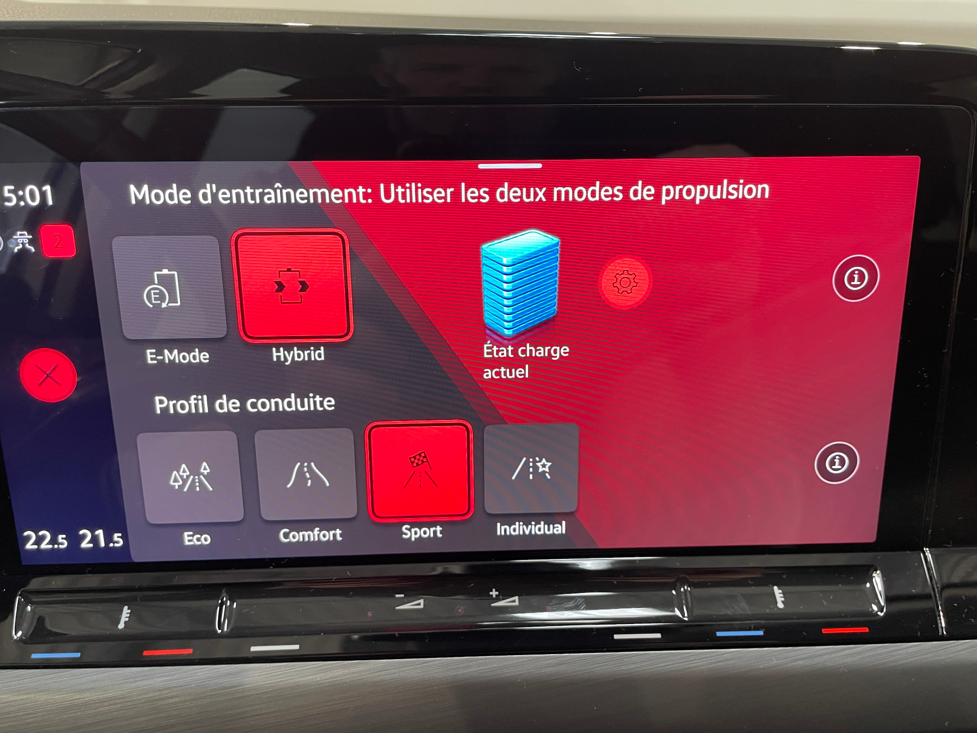 Selection du profil de conduite