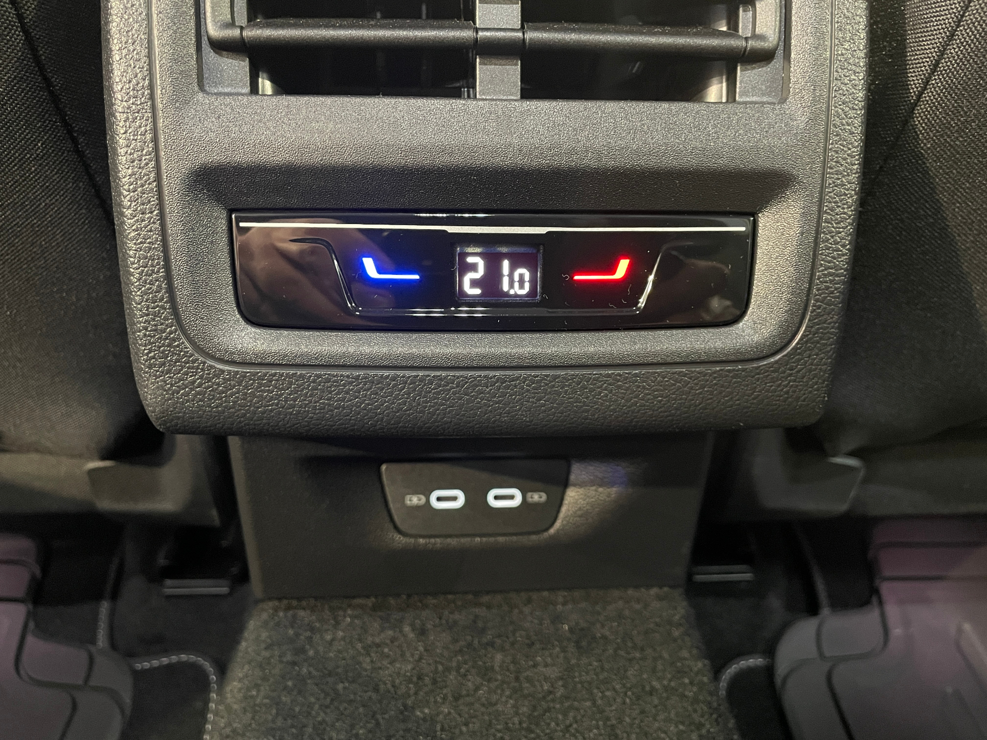2 prises de chargement USB-C derriere l'accoudoir pour les passagers AR
