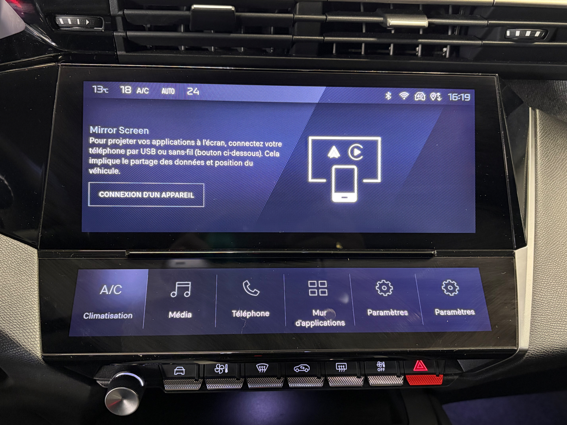 Fonction Mirror Screen (Apple CarPlay/Android Auto) sans fil